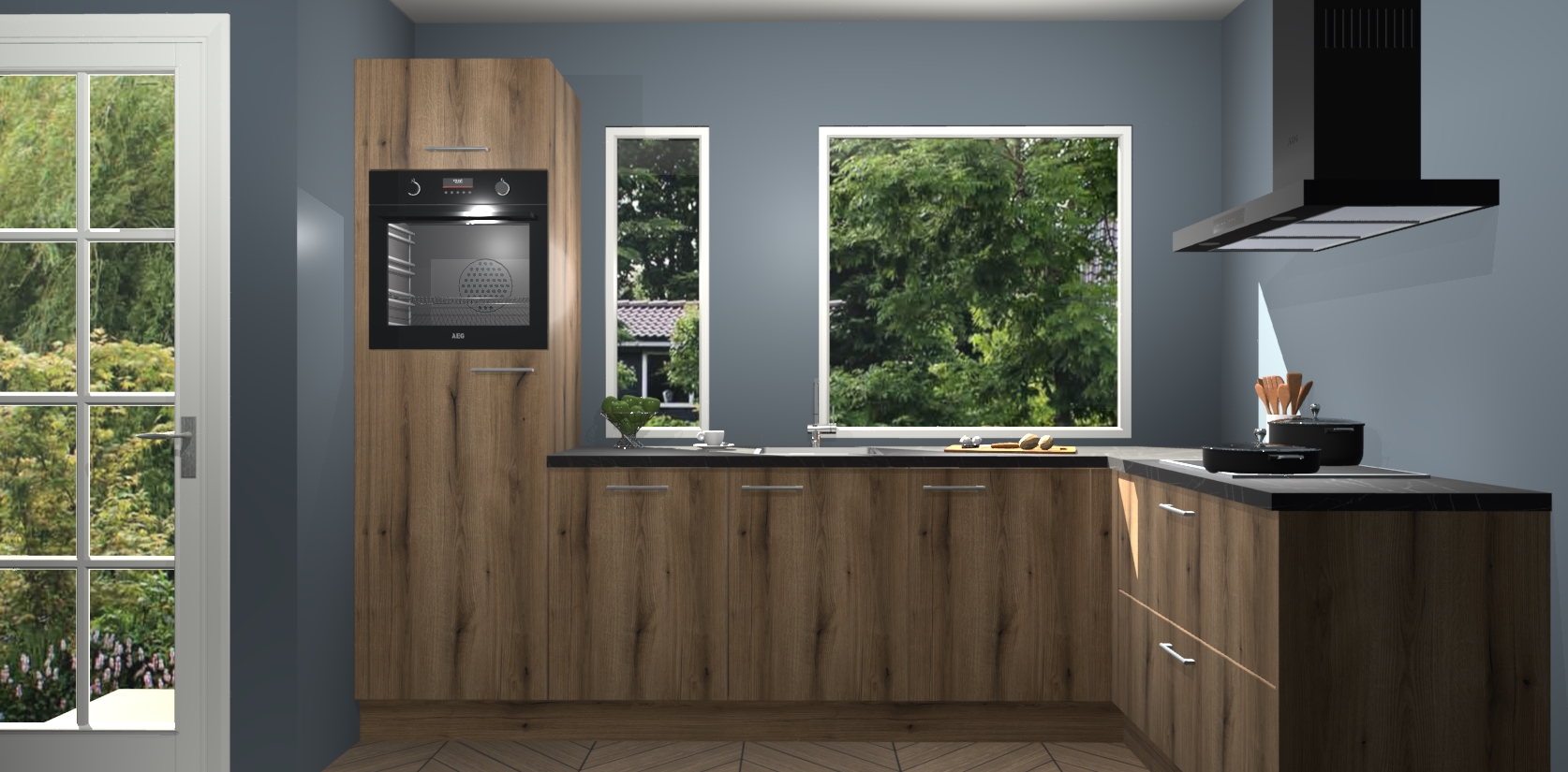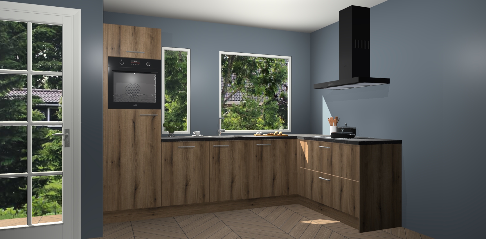 Deze complete keuken wordt geleverd met 5 inbouwapparaten: een oven, inductiekookplaat, afzuigkap, vaatwasser en koelkast. De toestellen kunnen na bestelling ook gemakkelijk worden opgewaardeerd naar AEG. Bovendien is elke deur in deze keuken voorzien van handige softclose technologie voor eenvoudig gebruik! Als een leuke toevoeging zit in deze keuken ook een carrousel, zo hoef je niet meer de hoek in duiken om iets te pakken.