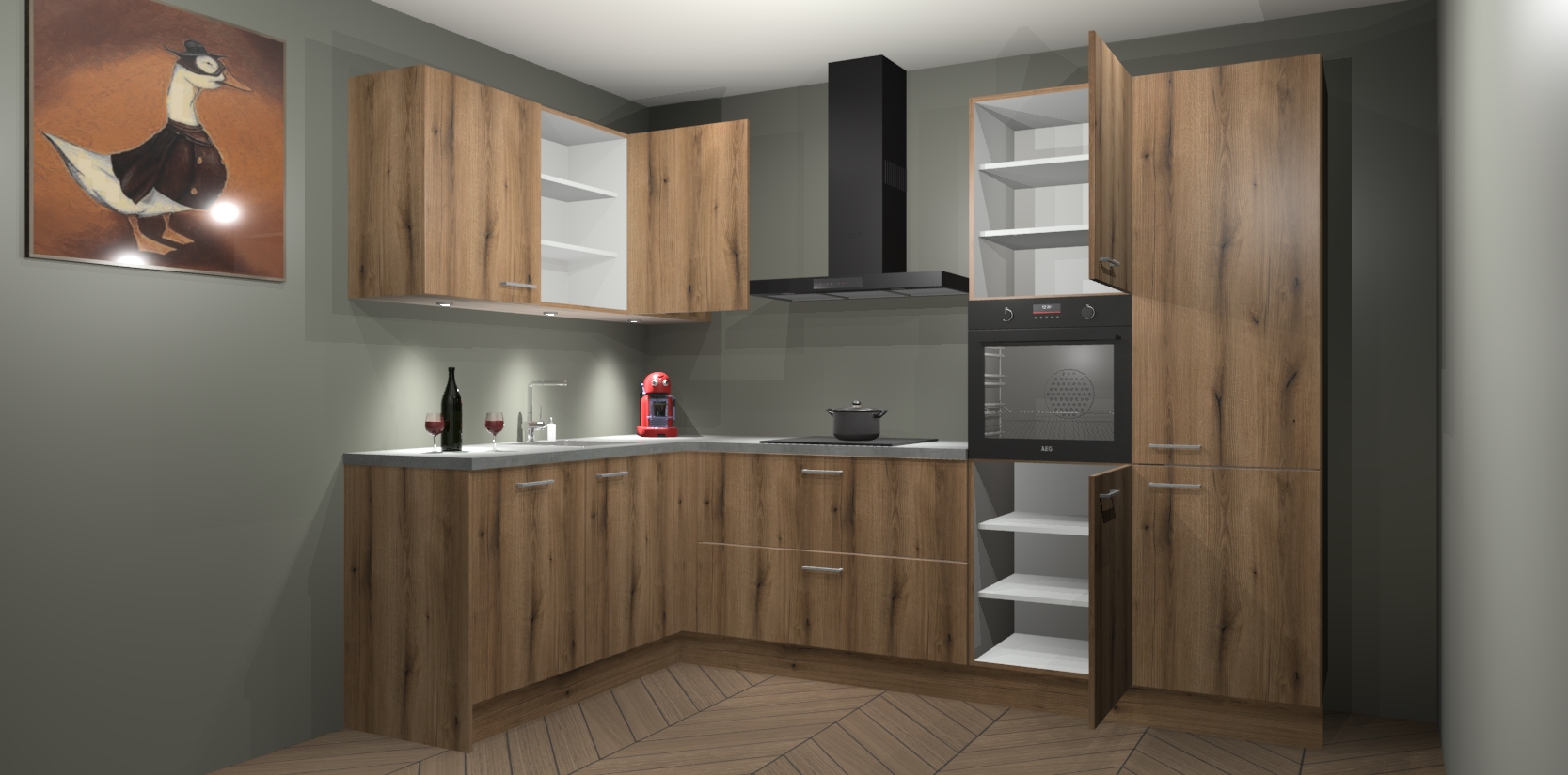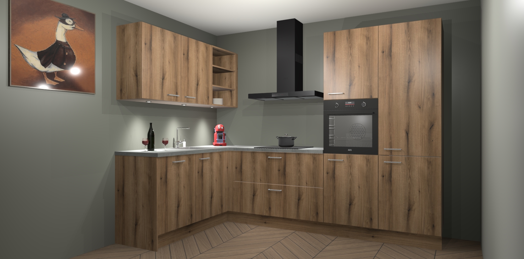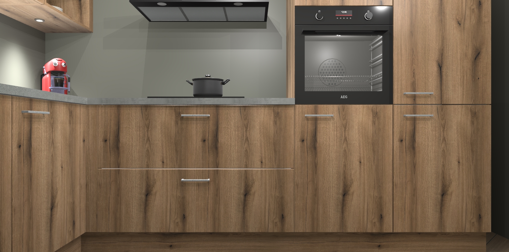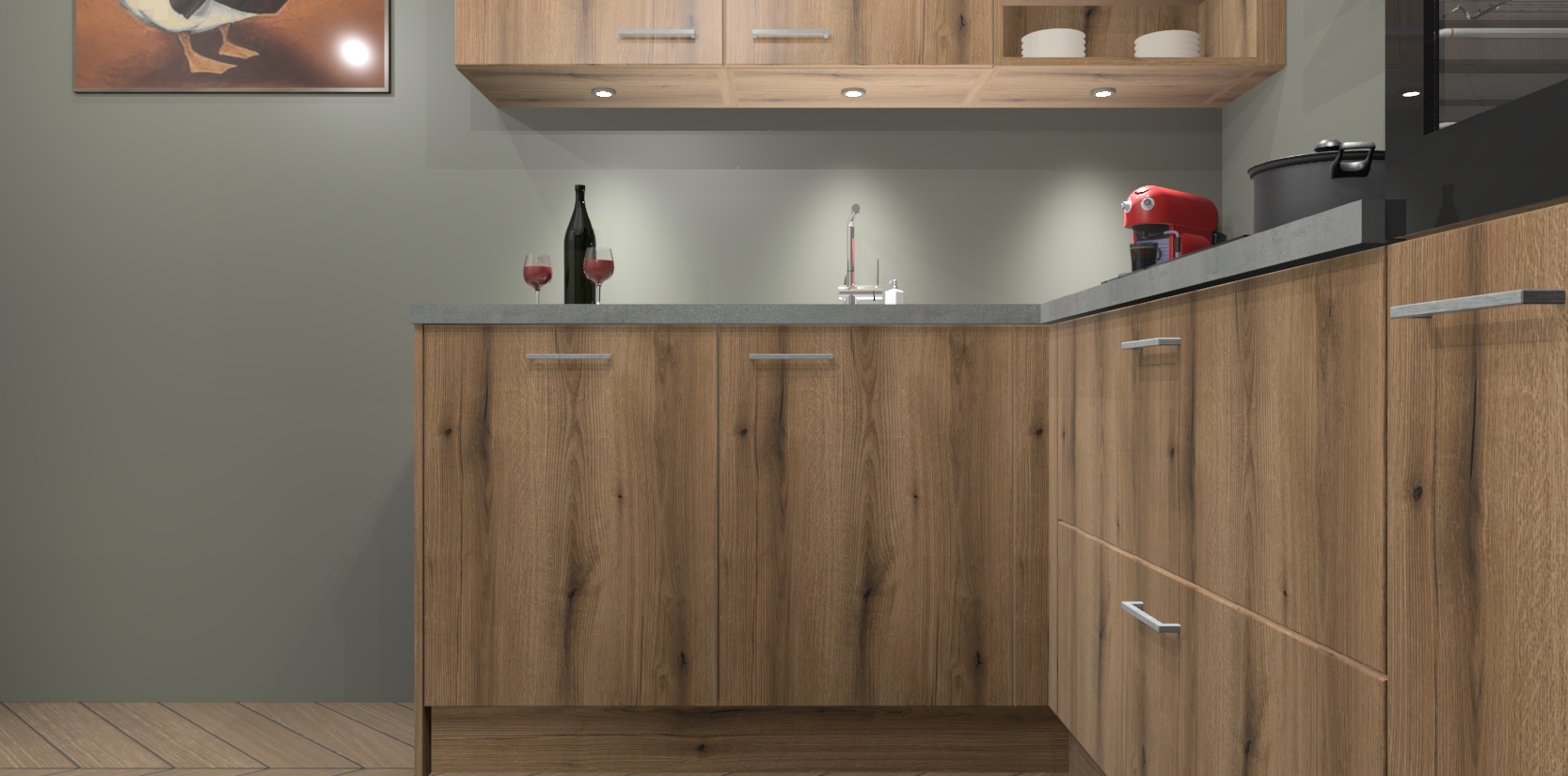 De Goud Eiken keuken Cognac gaat alleen maar om de beste keukenervaring. Kies gewoon de beste apparatuur en ongeëvenaarde Duitse constructie die u thuis wilt hebben en verander uw huiskamer hartelijkheid meteen in professionaliteit. Laat de toon weten dat u gemakkelijk kan genieten van alle luxe die u verdiend? Bestel nu de Goud Eiken keuken Cognac voor bij u thuis!