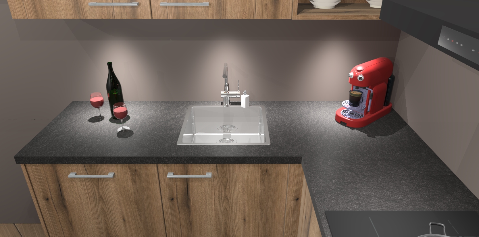 - Bij een hoekwerkblad zijn de hoeken in gevreesd en op maat gemaakt