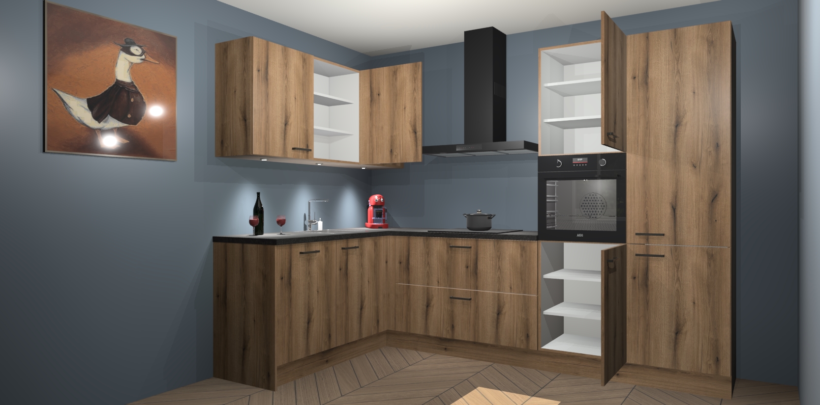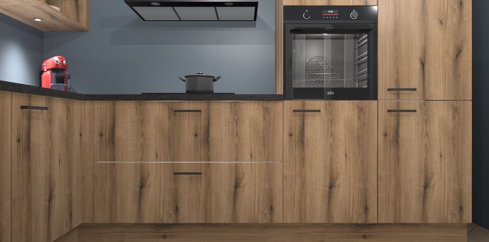 De Goud Eiken keuken Cognac gaat alleen maar om de beste keukenervaring. Kies gewoon de beste apparatuur en ongeëvenaarde Duitse constructie die u thuis wilt hebben en verander uw huiskamer hartelijkheid meteen in professionaliteit. Laat de toon weten dat u gemakkelijk kan genieten van alle luxe die u verdiend? Bestel nu de Goud Eiken keuken Cognac voor bij u thuis!