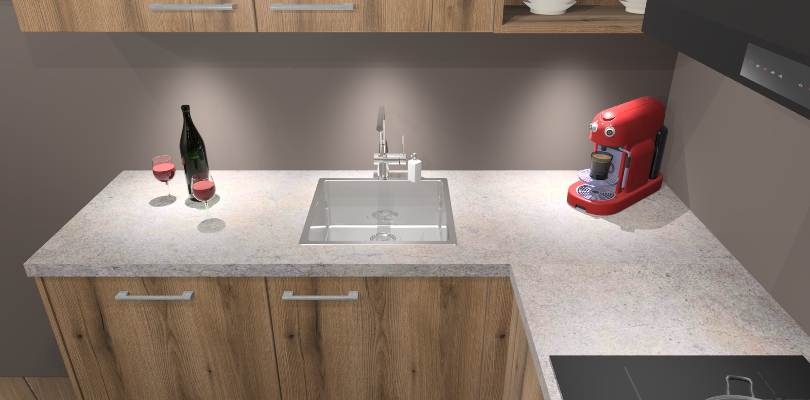 - Bij een hoekwerkblad zijn de hoeken in gevreesd en op maat gemaakt