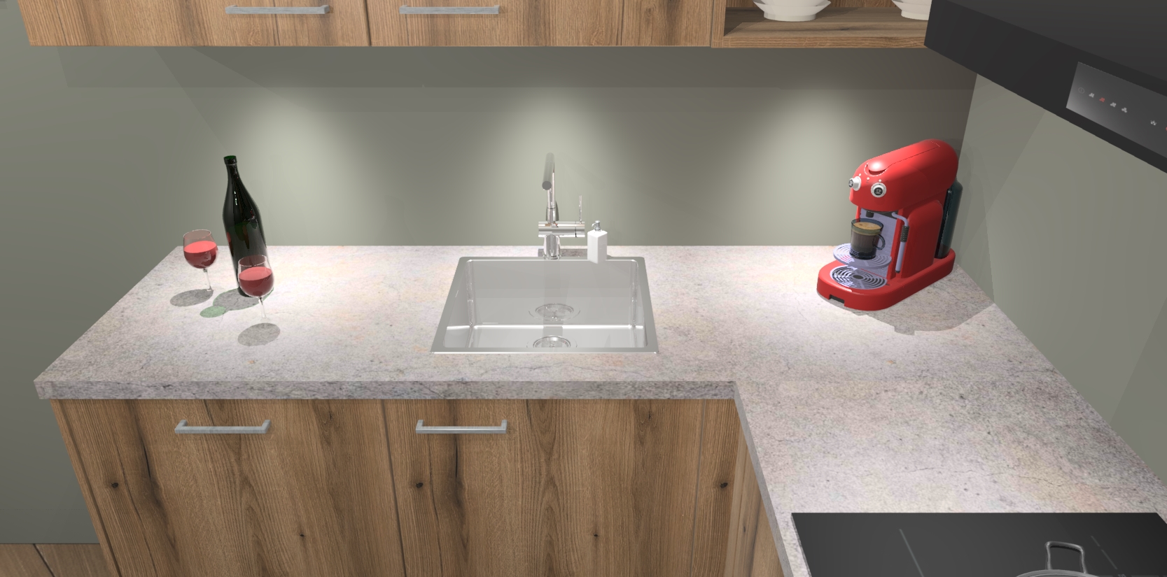 - Bij een hoekwerkblad zijn de hoeken in gevreesd en op maat gemaakt
