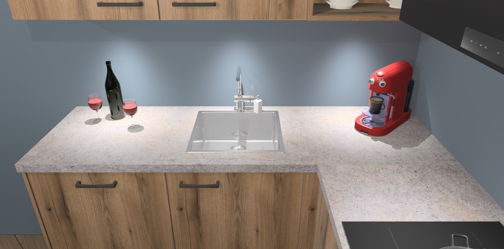 • Bij een hoekwerkblad zijn de hoeken in gevreesd en op maat gemaakt