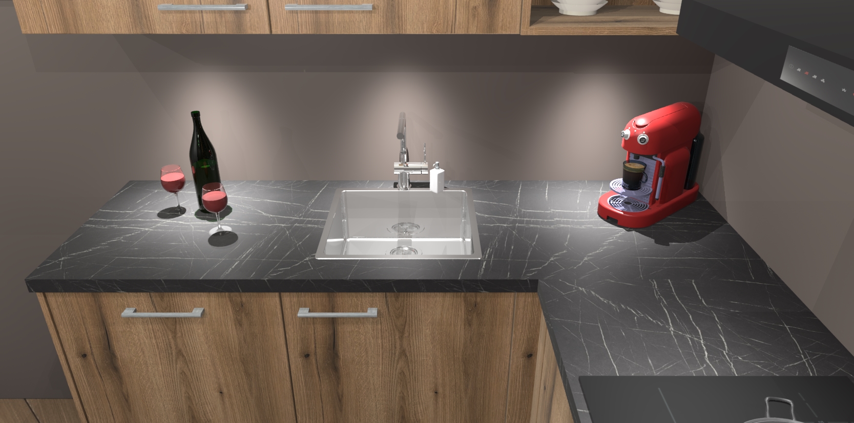- Bij een hoekwerkblad zijn de hoeken in gevreesd en op maat gemaakt