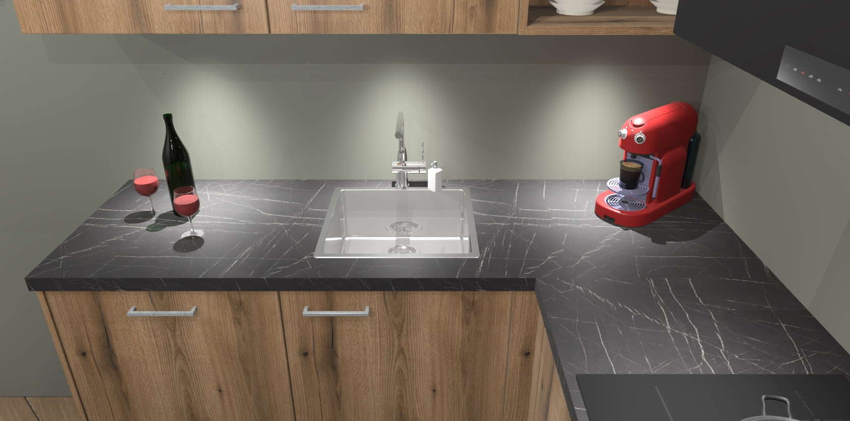 - Bij een hoekwerkblad zijn de hoeken in gevreesd en op maat gemaakt