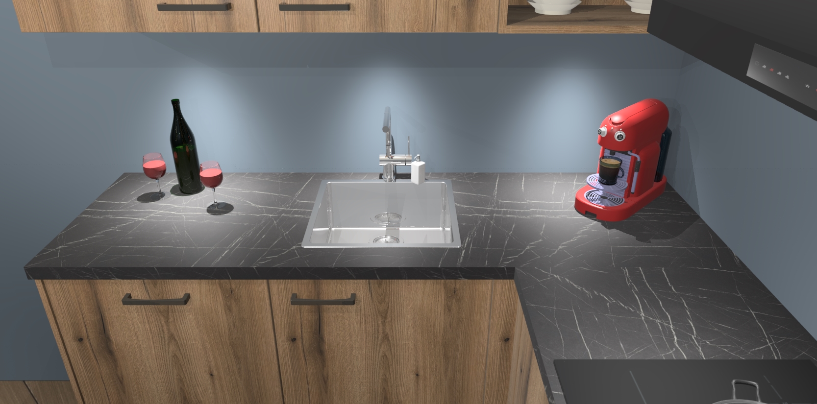 - Bij een hoekwerkblad zijn de hoeken in gevreesd en op maat gemaakt