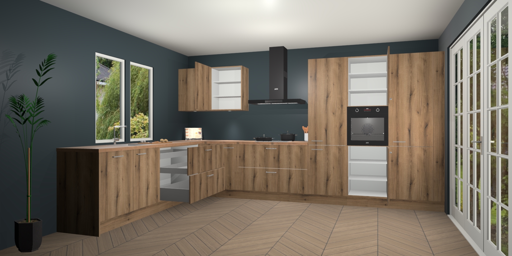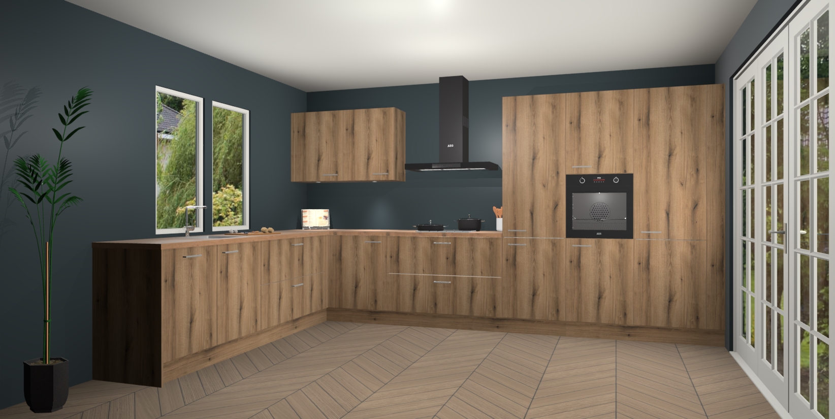 Kom dichtbij de perfecte keuken van uw dromen met de Goud Eiken keuken Debrecen. Met een prachtige houtlook en eigentijds ontwerp, straalt deze keuken warmte en sfeer uit. Of u nu liefhebber bent van traditionele of moderne stijlen, er is genoeg ruimte om aan al uw behoeften te voldoen.