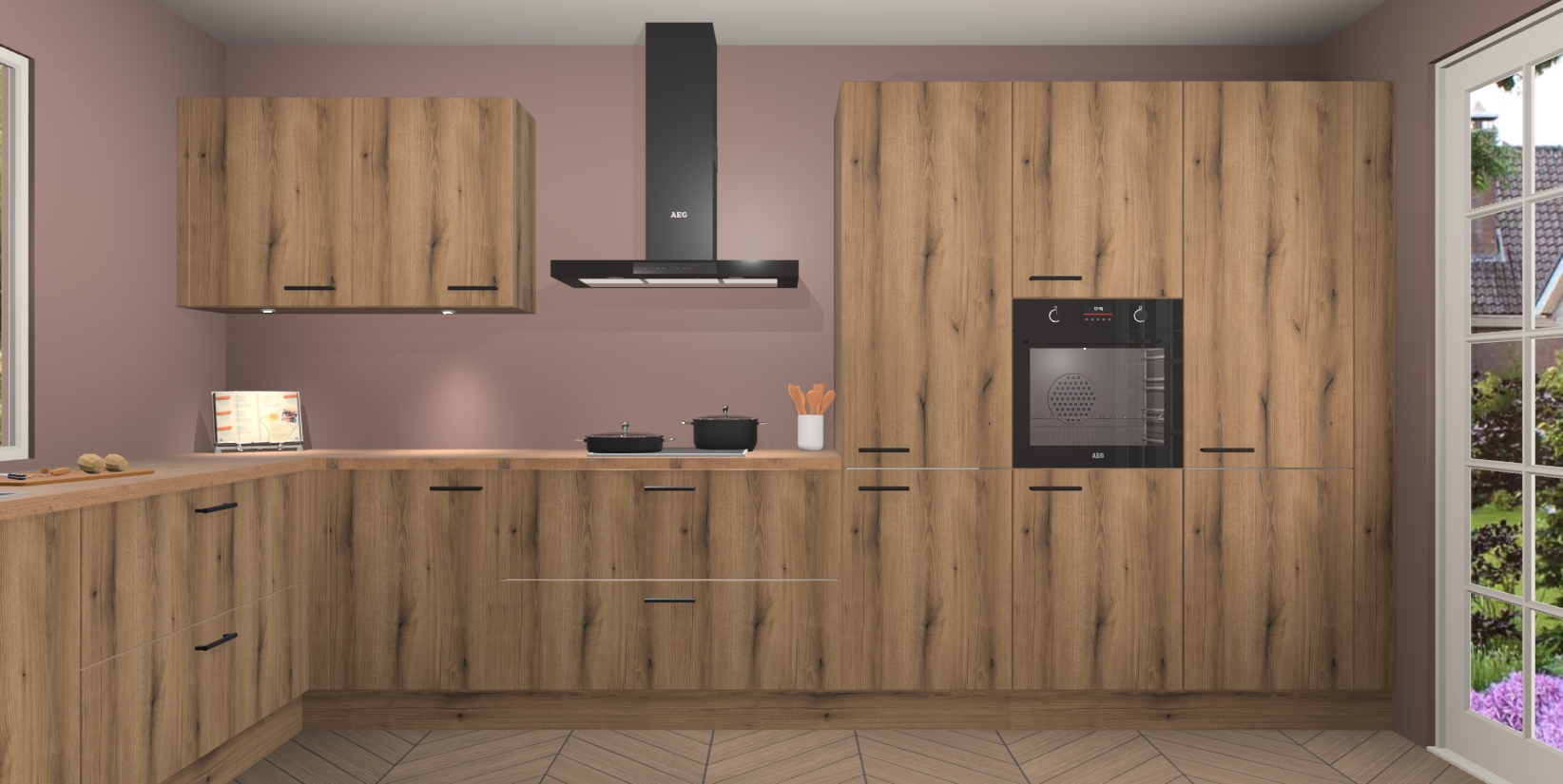 Heeft u nog apparatuur nodig? Geen probleem: de Goud Eiken keuken Debrecen bevat vijf ingebouwde apparaten - een oven, inductiekookplaat, afzuigkap, vaatwasser en koelkast - die gemakkelijk kunnen worden bijgewerkt naar AEG na bestelling. En als dat nog niet genoeg is; onze kasten worden pre-geassembleerd geleverd en zijn verkrijgbaar tegen een vastgeroeste lage prijs! U hoeft nooit meer te zoeken naar goede kwaliteit en service want onze producten hebben echt Duitse kwaliteit.