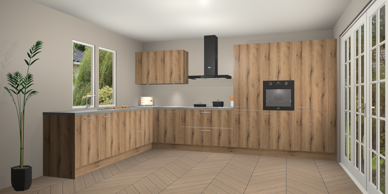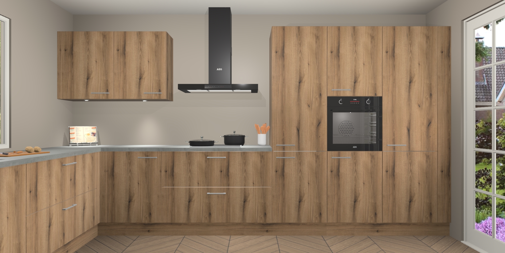 Kom dichtbij de perfecte keuken van uw dromen met de Goud Eiken keuken Debrecen. Met een prachtige houtlook en eigentijds ontwerp, straalt deze keuken warmte en sfeer uit. Of u nu liefhebber bent van traditionele of moderne stijlen, er is genoeg ruimte om aan al uw behoeften te voldoen.