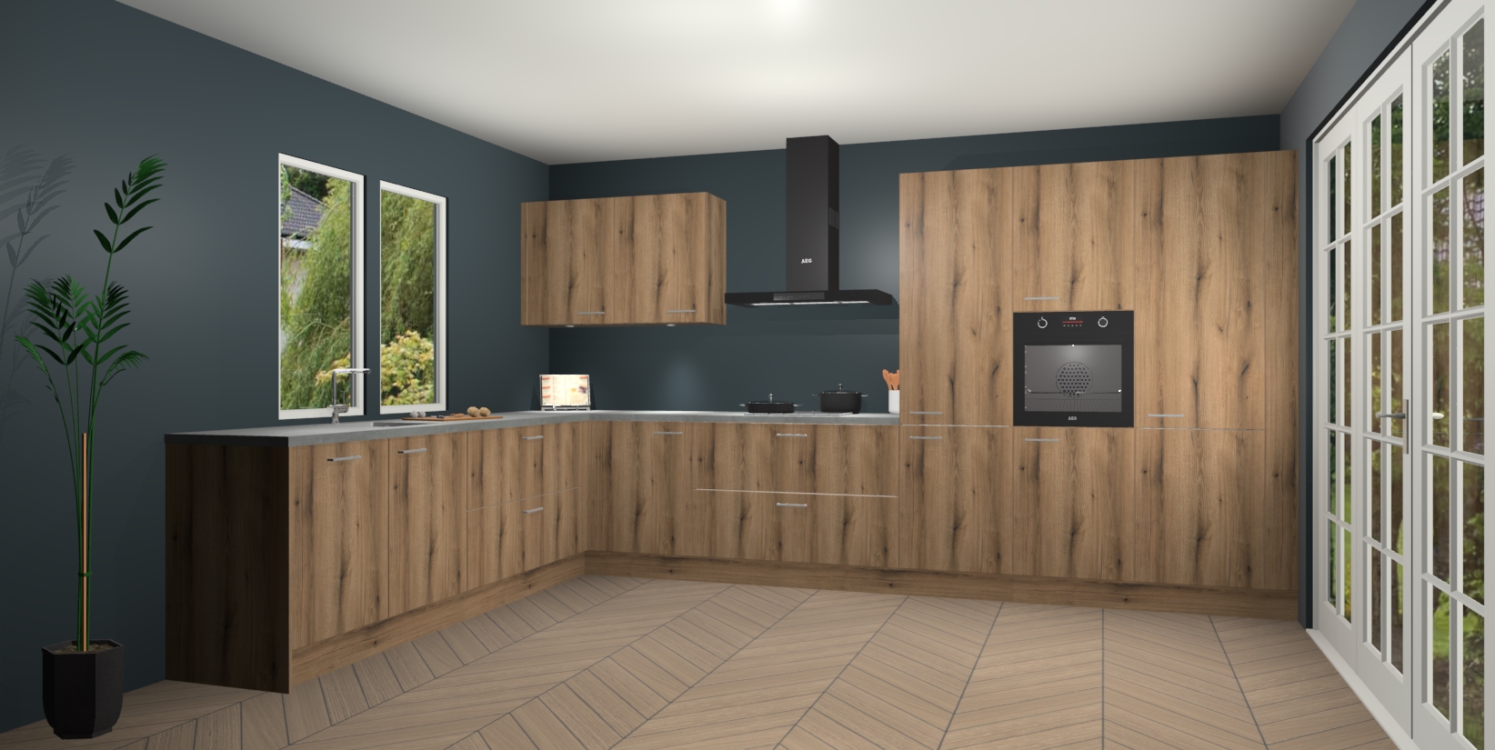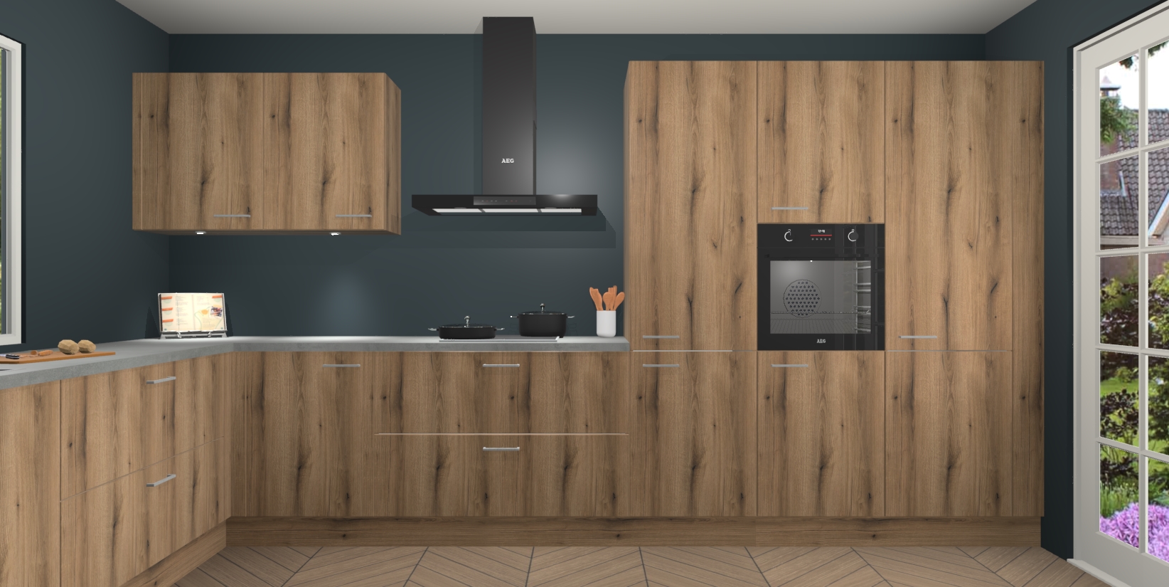 Kom dichtbij de perfecte keuken van uw dromen met de Goud Eiken keuken Debrecen. Met een prachtige houtlook en eigentijds ontwerp, straalt deze keuken warmte en sfeer uit. Of u nu liefhebber bent van traditionele of moderne stijlen, er is genoeg ruimte om aan al uw behoeften te voldoen.