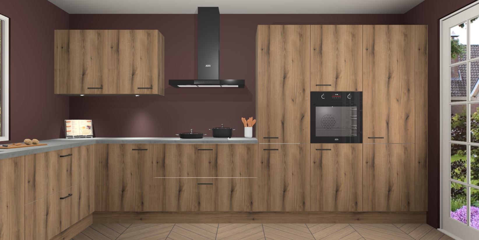 Kom dichtbij de perfecte keuken van uw dromen met de Goud Eiken keuken Debrecen. Met een prachtige houtlook en eigentijds ontwerp, straalt deze keuken warmte en sfeer uit. Of u nu liefhebber bent van traditionele of moderne stijlen, er is genoeg ruimte om aan al uw behoeften te voldoen.