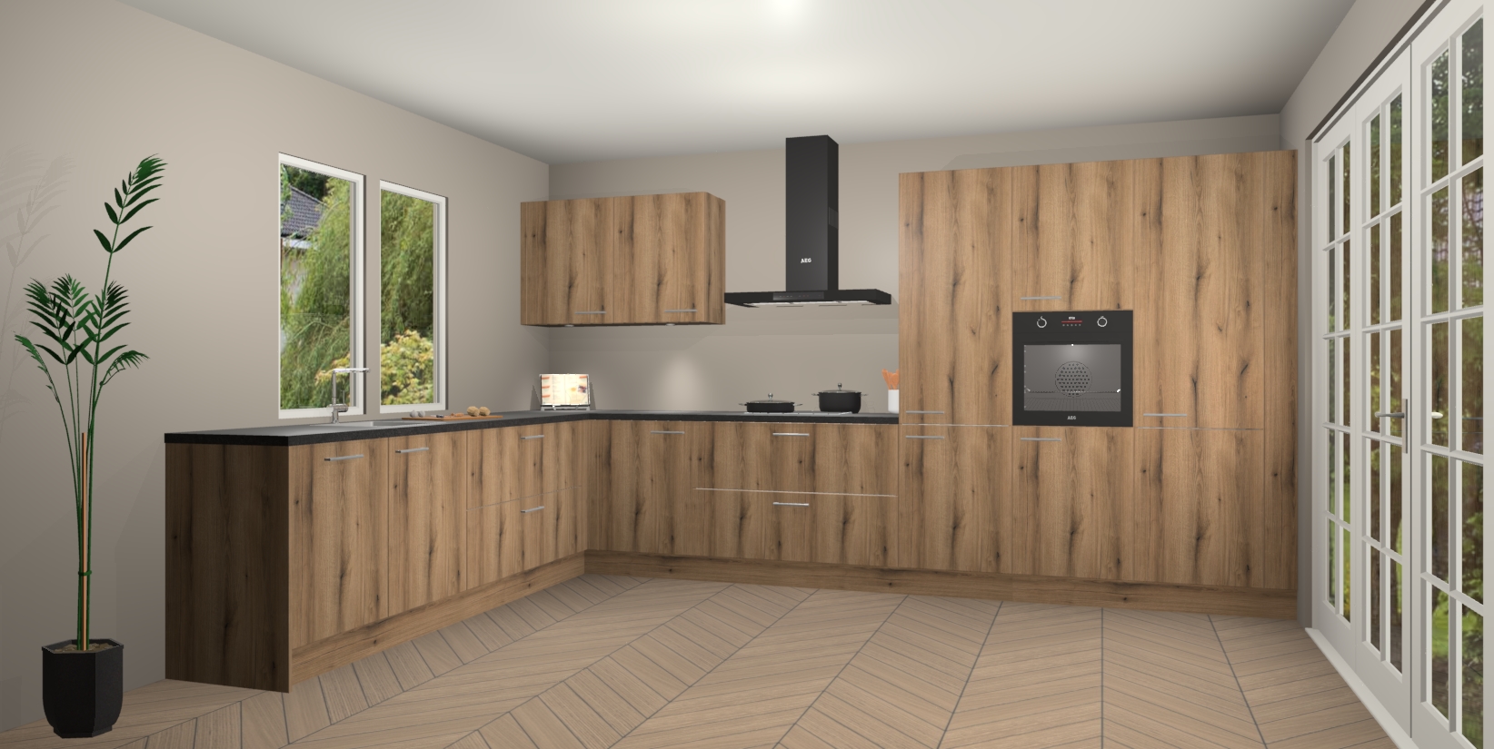 Kom dichtbij de perfecte keuken van uw dromen met de Goud Eiken keuken Debrecen. Met een prachtige houtlook en eigentijds ontwerp, straalt deze keuken warmte en sfeer uit. Of u nu liefhebber bent van traditionele of moderne stijlen, er is genoeg ruimte om aan al uw behoeften te voldoen.
