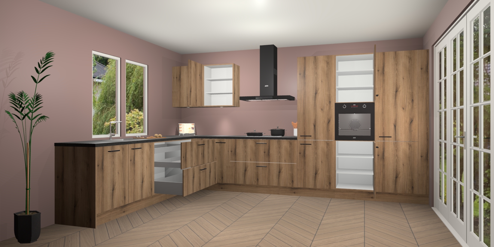Heeft u nog apparatuur nodig? Geen probleem: de Goud Eiken keuken Debrecen bevat vijf ingebouwde apparaten - een oven, inductiekookplaat, afzuigkap, vaatwasser en koelkast - die gemakkelijk kunnen worden bijgewerkt naar AEG na bestelling. En als dat nog niet genoeg is; onze kasten worden pre-geassembleerd geleverd en zijn verkrijgbaar tegen een vastgeroeste lage prijs! U hoeft nooit meer te zoeken naar goede kwaliteit en service want onze producten hebben echt Duitse kwaliteit.
