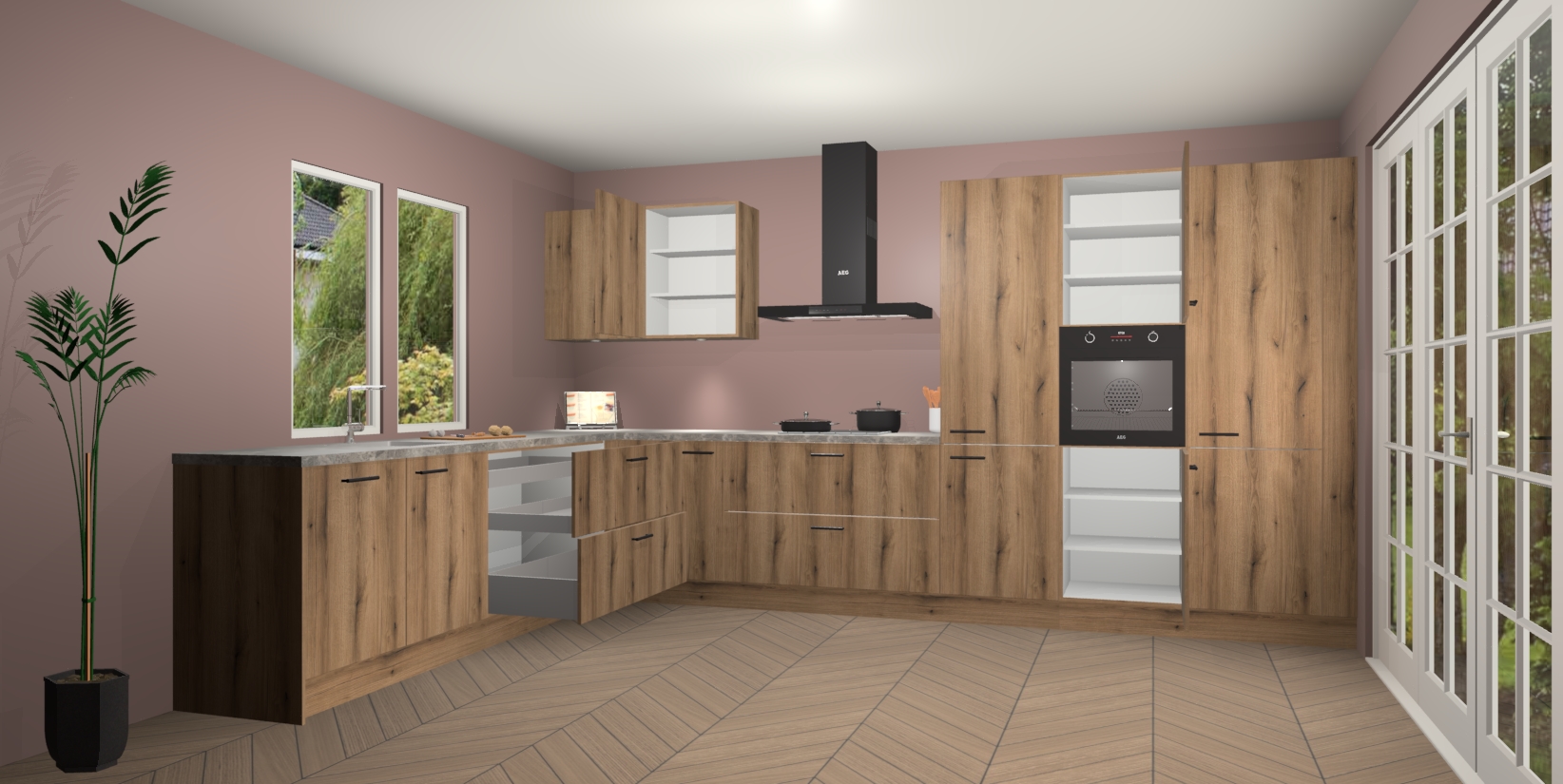 Heeft u nog apparatuur nodig? Geen probleem: de Goud Eiken keuken Debrecen bevat vijf ingebouwde apparaten - een oven, inductiekookplaat, afzuigkap, vaatwasser en koelkast - die gemakkelijk kunnen worden bijgewerkt naar AEG na bestelling. En als dat nog niet genoeg is; onze kasten worden pre-geassembleerd geleverd en zijn verkrijgbaar tegen een vastgeroeste lage prijs! U hoeft nooit meer te zoeken naar goede kwaliteit en service want onze producten hebben echt Duitse kwaliteit.