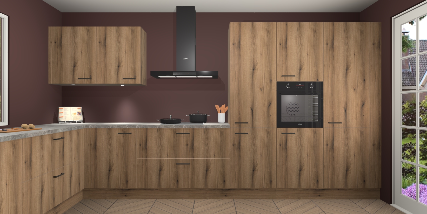 Kom dichtbij de perfecte keuken van uw dromen met de Goud Eiken keuken Debrecen. Met een prachtige houtlook en eigentijds ontwerp, straalt deze keuken warmte en sfeer uit. Of u nu liefhebber bent van traditionele of moderne stijlen, er is genoeg ruimte om aan al uw behoeften te voldoen.
