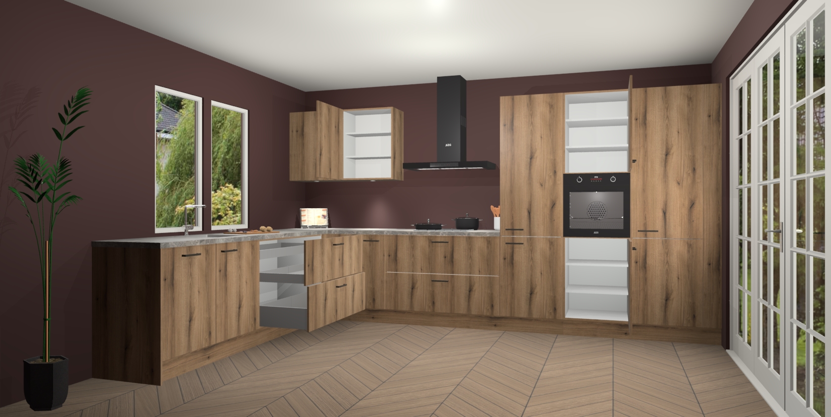 Heeft u nog apparatuur nodig? Geen probleem: de Goud Eiken keuken Debrecen bevat vijf ingebouwde apparaten - een oven, inductiekookplaat, afzuigkap, vaatwasser en koelkast - die gemakkelijk kunnen worden bijgewerkt naar AEG na bestelling. En als dat nog niet genoeg is; onze kasten worden pre-geassembleerd geleverd en zijn verkrijgbaar tegen een vastgeroeste lage prijs! U hoeft nooit meer te zoeken naar goede kwaliteit en service want onze producten hebben echt Duitse kwaliteit.