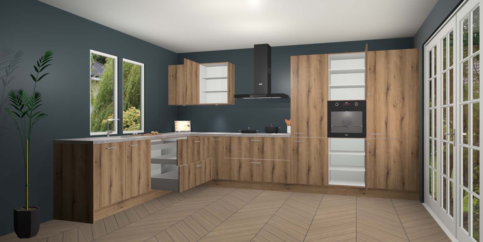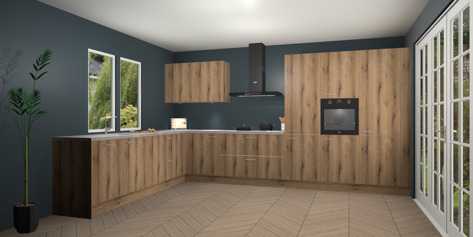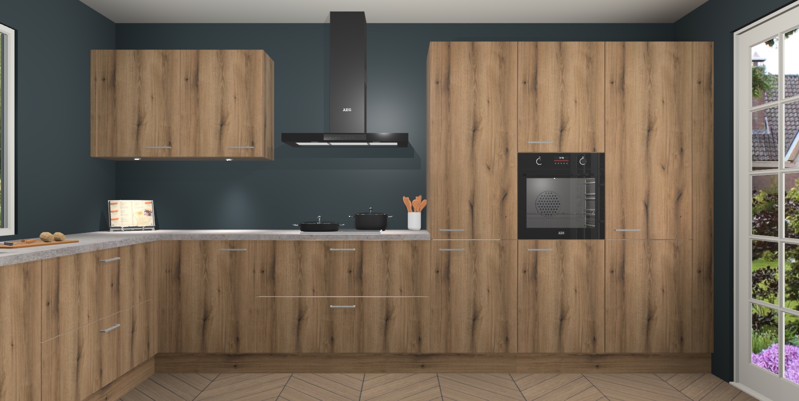 Kom dichtbij de perfecte keuken van uw dromen met de Goud Eiken keuken Debrecen. Met een prachtige houtlook en eigentijds ontwerp, straalt deze keuken warmte en sfeer uit. Of u nu liefhebber bent van traditionele of moderne stijlen, er is genoeg ruimte om aan al uw behoeften te voldoen.