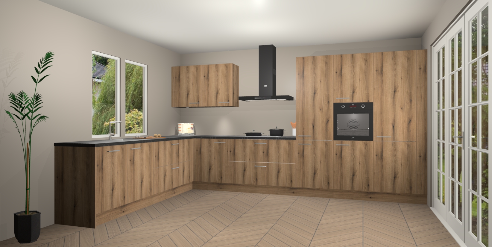 Kom dichtbij de perfecte keuken van uw dromen met de Goud Eiken keuken Debrecen. Met een prachtige houtlook en eigentijds ontwerp, straalt deze keuken warmte en sfeer uit. Of u nu liefhebber bent van traditionele of moderne stijlen, er is genoeg ruimte om aan al uw behoeften te voldoen.