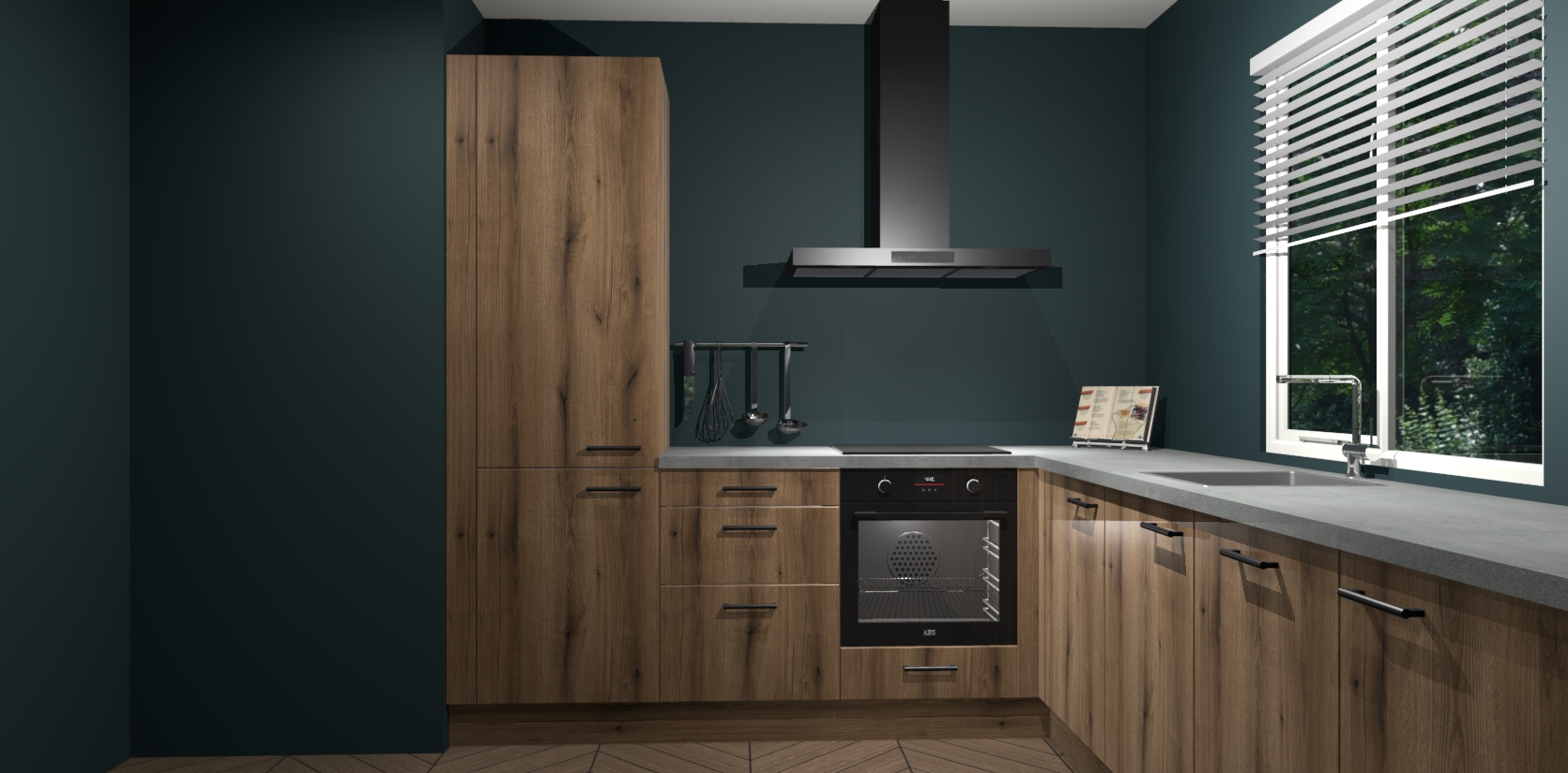Maak kennis met de Goud Eiken keuken Doha - de perfecte aanvulling voor uw moderne keuken! Ervaar tijdloos design, elegantie en een chique uitstraling met onze zwarte handgrepen, soft-close deuren en veel opbergruimte. Dit alles wordt aangeboden tegen een vaste lage prijs voor ongeëvenaarde Duitse keukenkwaliteit!