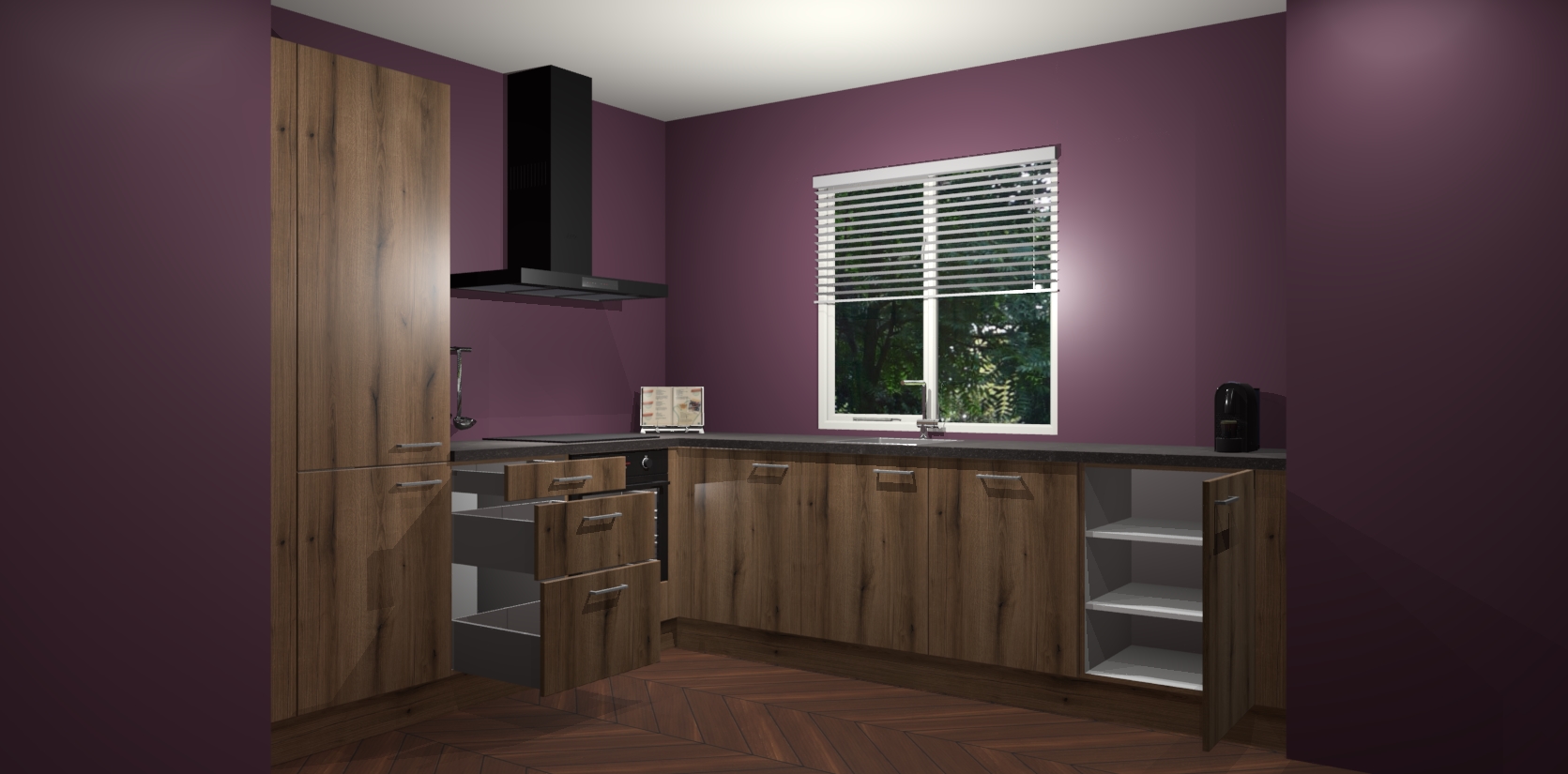 Maak kennis met de Goud Eiken keuken Doha - de perfecte aanvulling voor uw moderne keuken! Ervaar tijdloos design, elegantie en een chique uitstraling met onze zwarte handgrepen, soft-close deuren en veel opbergruimte. Dit alles wordt aangeboden tegen een vaste lage prijs voor ongeëvenaarde Duitse keukenkwaliteit!