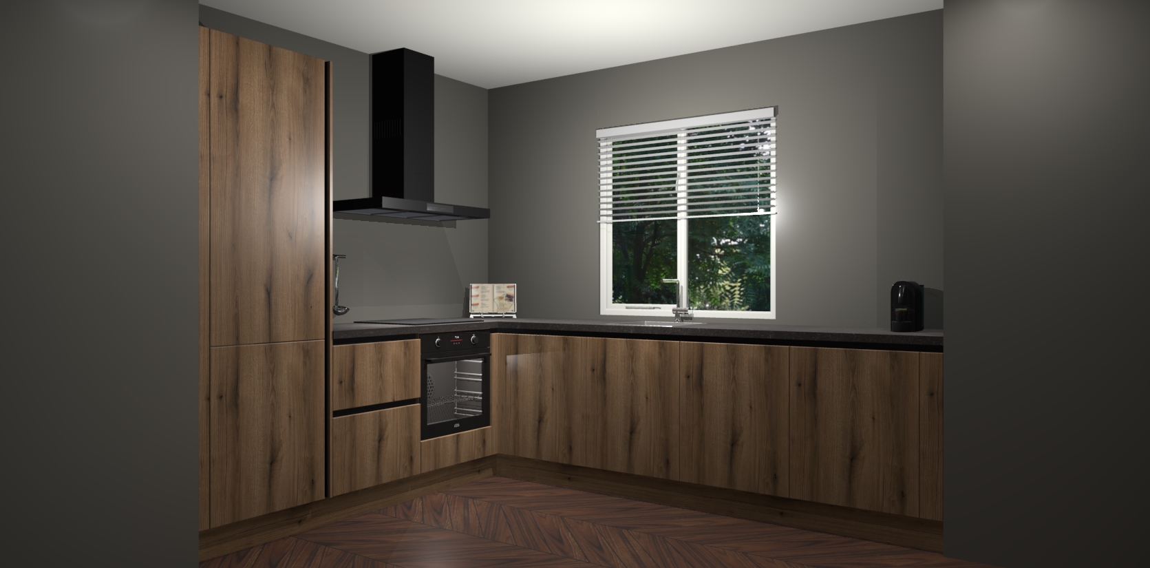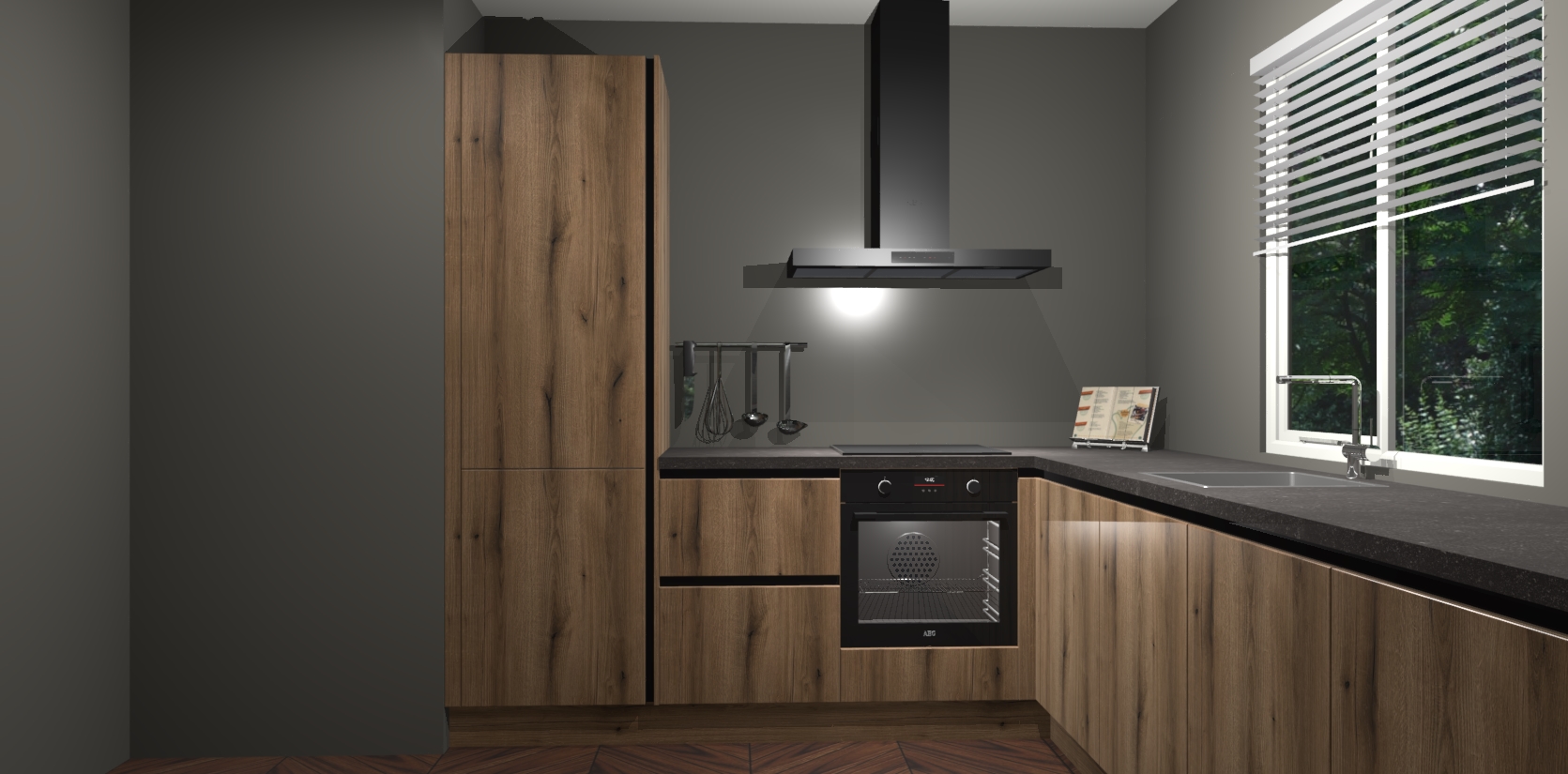 Maak kennis met de Goud Eiken keuken Doha - de perfecte aanvulling voor uw moderne keuken! Ervaar tijdloos design, elegantie en een chique uitstraling met onze zwarte handgrepen, soft-close deuren en veel opbergruimte. Dit alles wordt aangeboden tegen een vaste lage prijs voor ongeëvenaarde Duitse keukenkwaliteit!