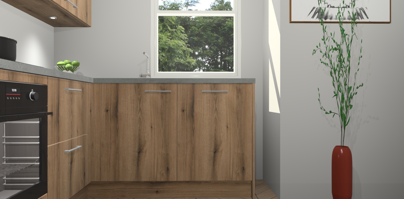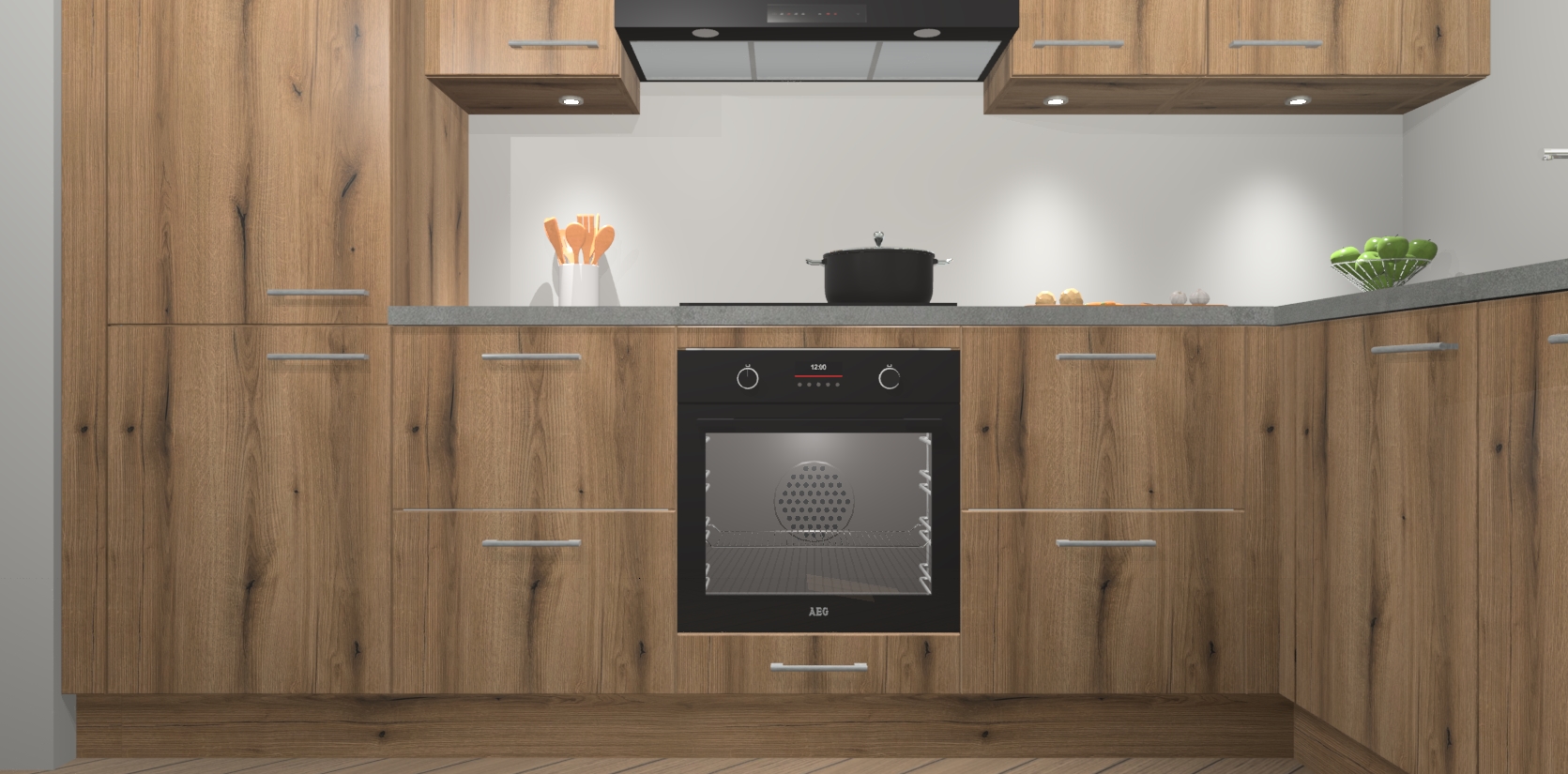 De Goud Eiken keuken Geneve is uitgerust met 5 inbouwapparaten - een oven, inductiekookplaat, afzuigkap, vaatwasser en koelkast - voor al uw kook- en bewaarbehoeftes. U kunt deze apparaten desgewenst eenvoudig upgraden naar AEG of de oven omruilen voor een combimagnetron na het plaatsen van uw bestelling. En met de soft close deuren, voldoende opbergruimte en kasten die voorgemonteerd worden geleverd, bent u in een mum van tijd klaar om heerlijke maaltijden te bereiden!
