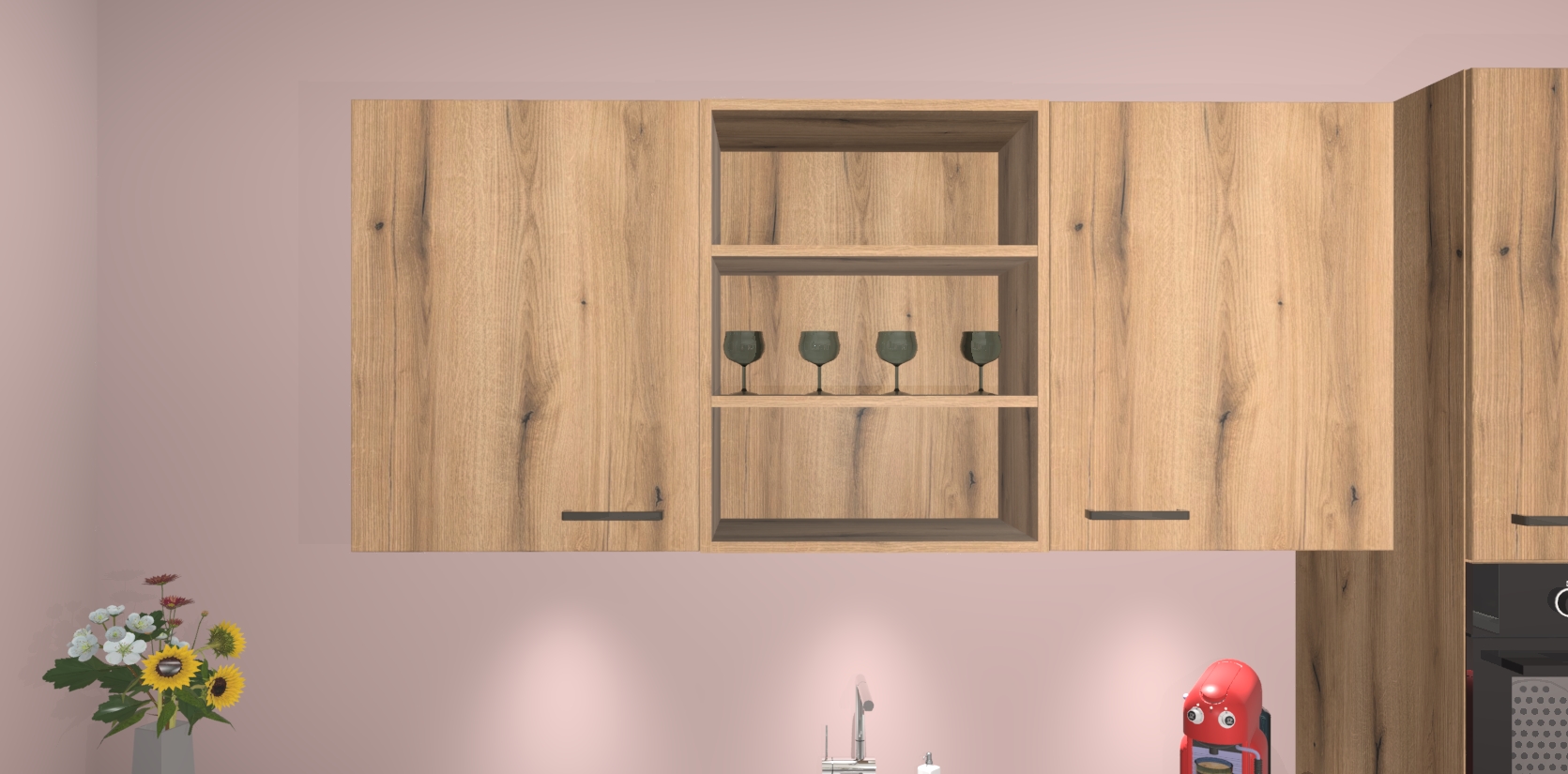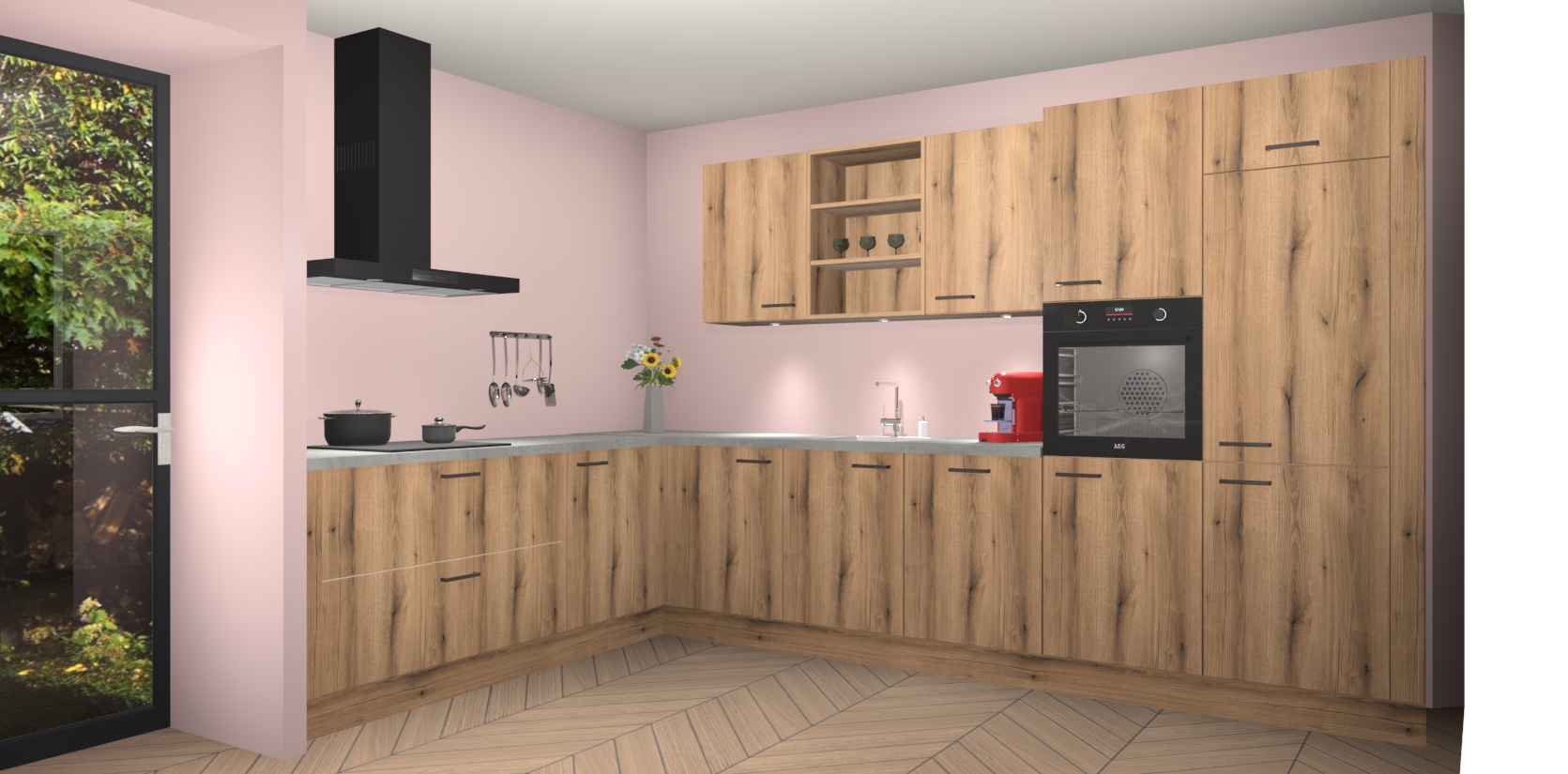 De Goud Eiken keuken Gotenburg is zo ontworpen dat u alle mogelijke vormen van opslagruimte kunt genieten. Bovendien heeft u meteen toegang tot vijf ingebouwde apparaten: een oven, inductiekookplaat, afzuigkap, vaatwasser en koelkast. Gewoon upgraden naar AEG na bestelling? Dit kan heel gemakkelijk worden geregeld. De deuren sluiten zacht dankzij zachtsluitende scharnieren en ze houden warmte vast terwijl ze uitzonderlijk stil blijven wanneer ze worden geopend of gesloten.