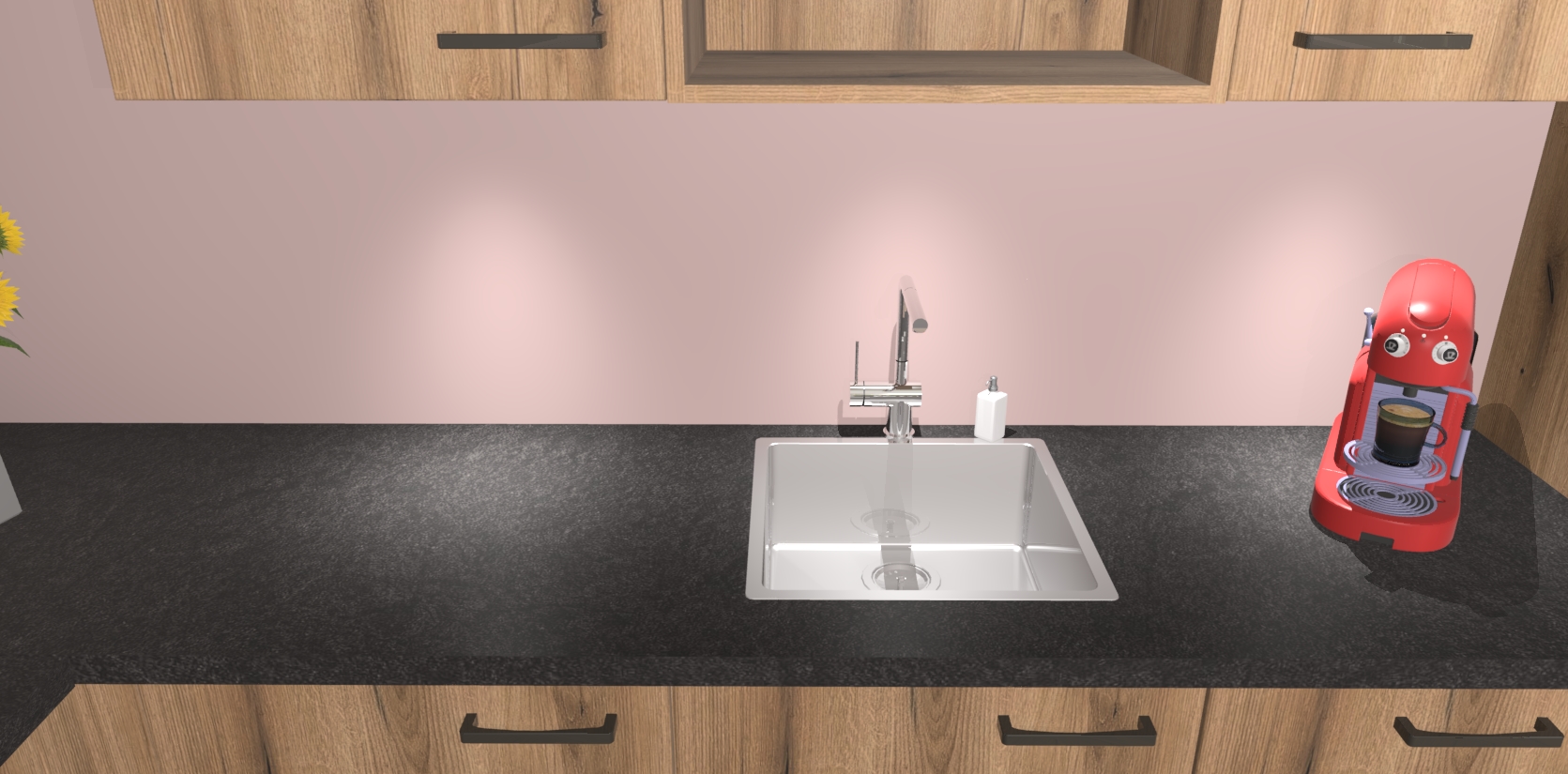 - De spoelbak is nog niet in gevreesd. Dit dient tijdens het werk gedaan te worden