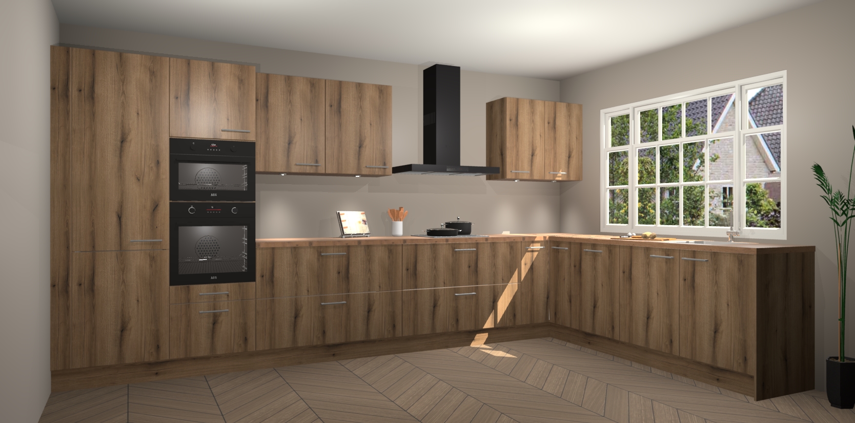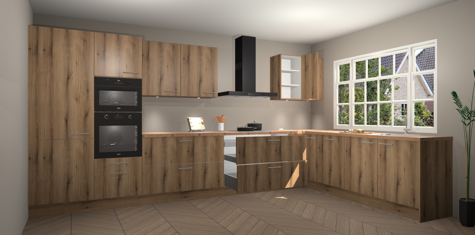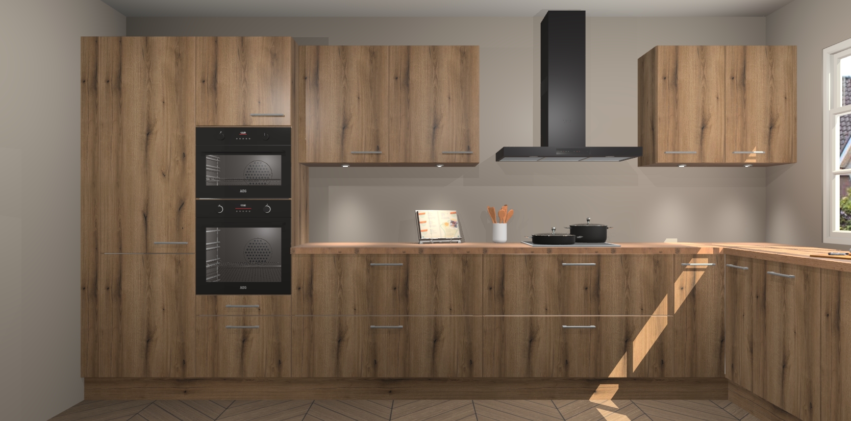 Kom dichtbij de perfecte keuken van uw dromen met de goud eiken keuken Graz. Met een prachtige houtlook en eigentijds ontwerp, straalt deze keuken warmte en sfeer uit. Of u nu liefhebber bent van traditionele of moderne stijlen, er is genoeg ruimte om aan al uw behoeften te voldoen.