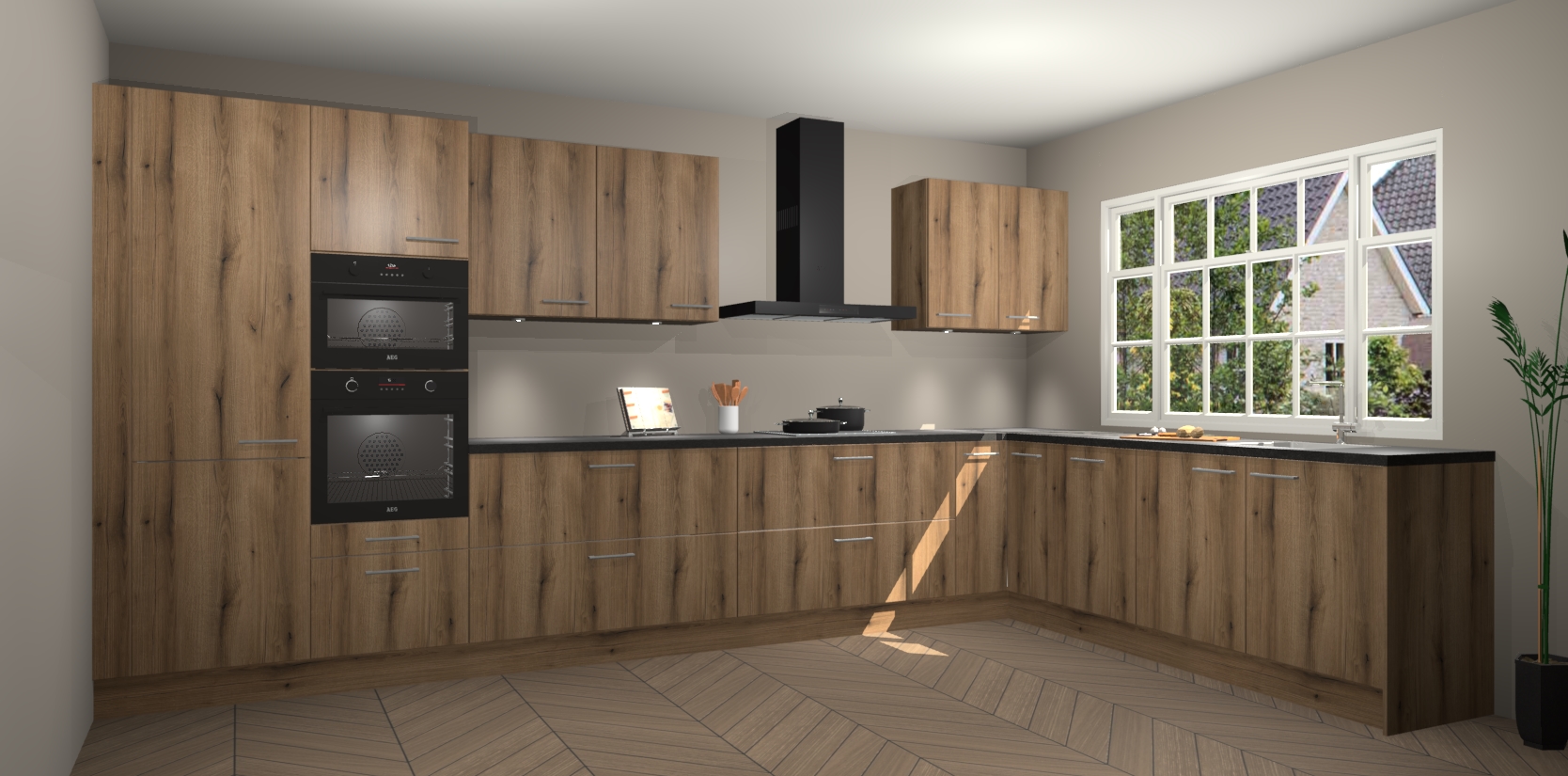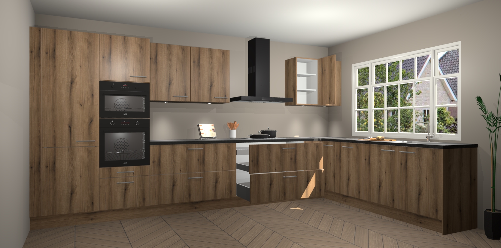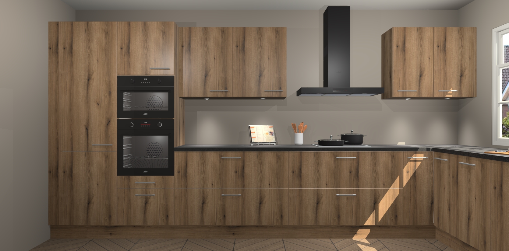 Kom dichtbij de perfecte keuken van uw dromen met de goud eiken keuken Graz. Met een prachtige houtlook en eigentijds ontwerp, straalt deze keuken warmte en sfeer uit. Of u nu liefhebber bent van traditionele of moderne stijlen, er is genoeg ruimte om aan al uw behoeften te voldoen.