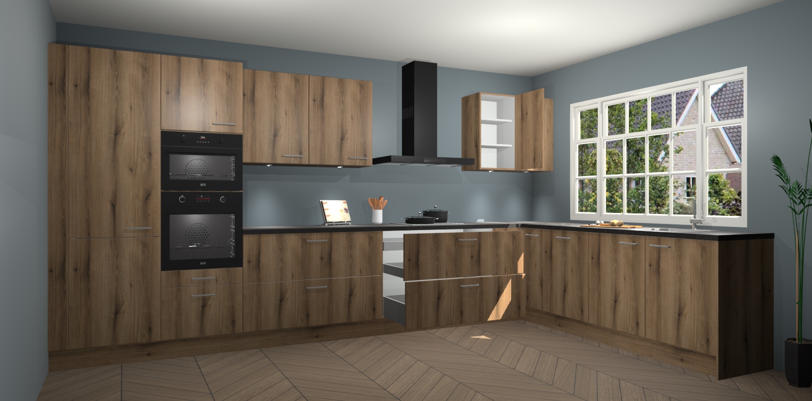 Kom dichtbij de perfecte keuken van uw dromen met de goud eiken keuken Graz. Met een prachtige houtlook en eigentijds ontwerp, straalt deze keuken warmte en sfeer uit. Of u nu liefhebber bent van traditionele of moderne stijlen, er is genoeg ruimte om aan al uw behoeften te voldoen.