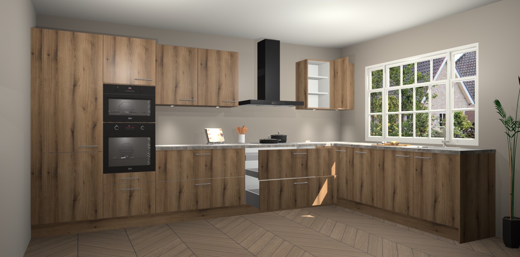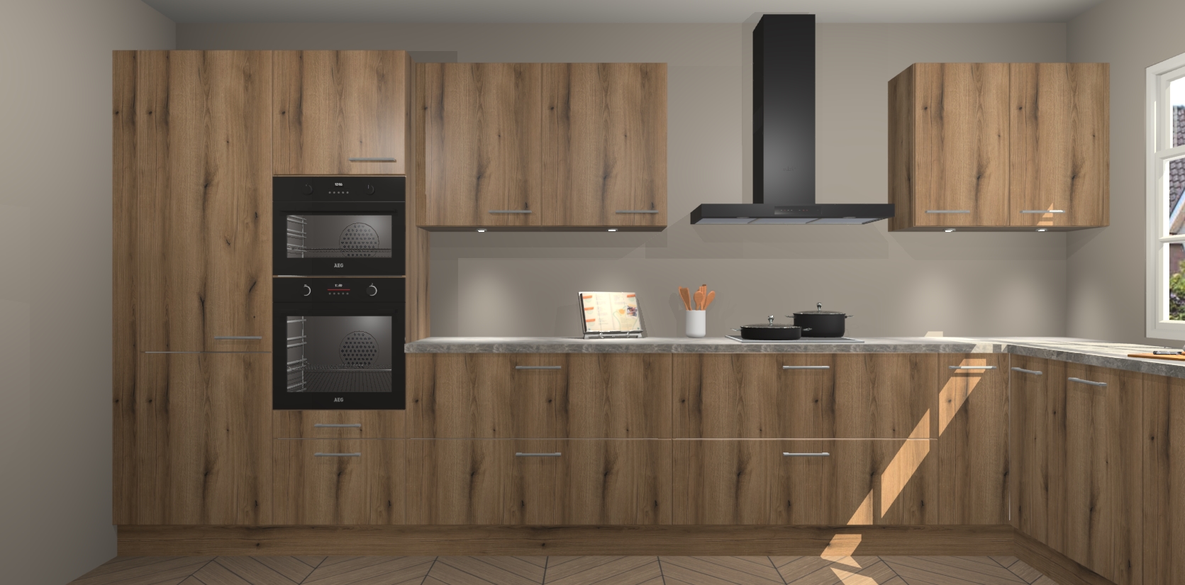 Kom dichtbij de perfecte keuken van uw dromen met de goud eiken keuken Graz. Met een prachtige houtlook en eigentijds ontwerp, straalt deze keuken warmte en sfeer uit. Of u nu liefhebber bent van traditionele of moderne stijlen, er is genoeg ruimte om aan al uw behoeften te voldoen.
