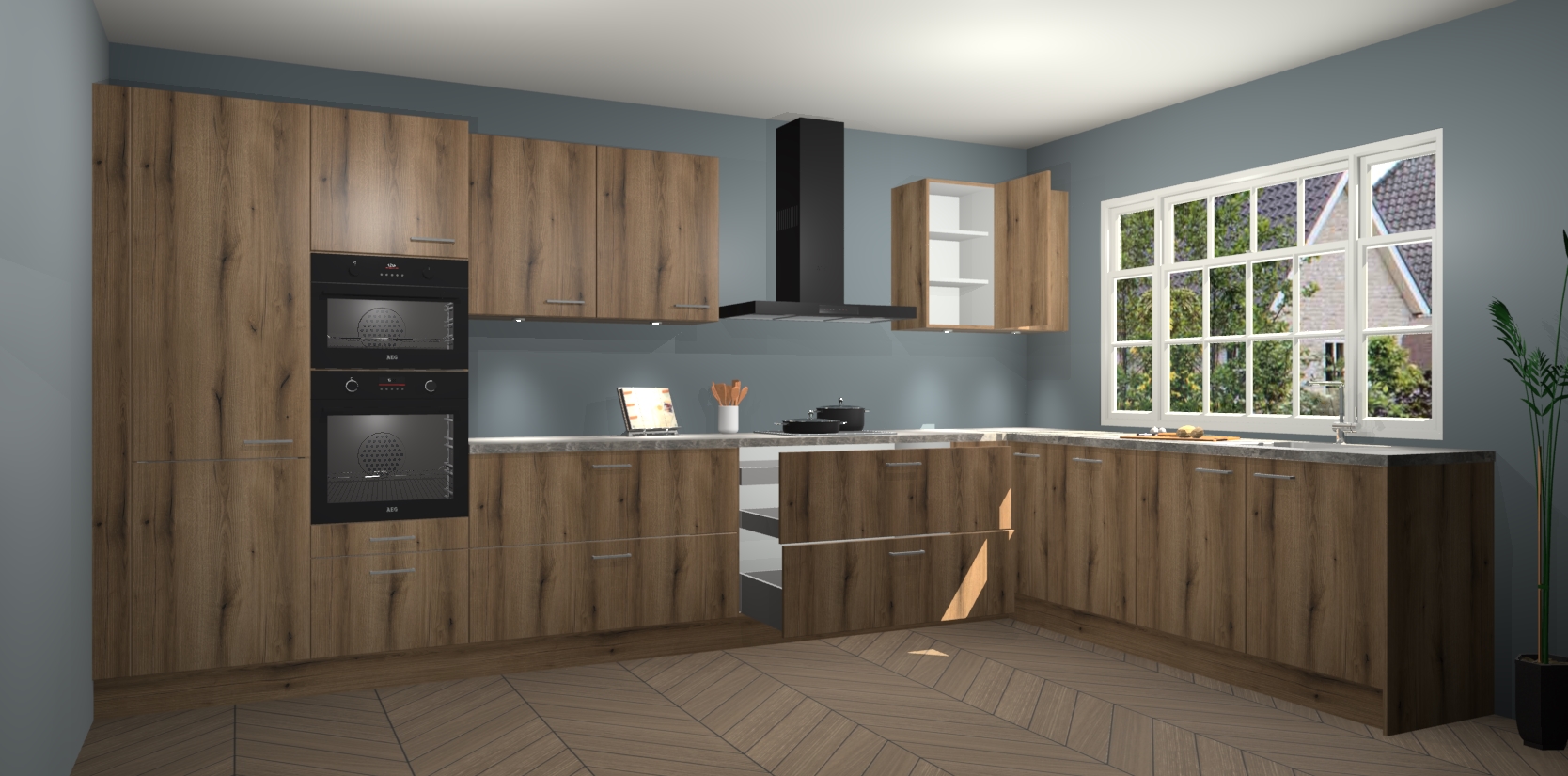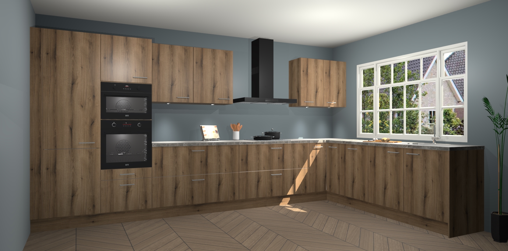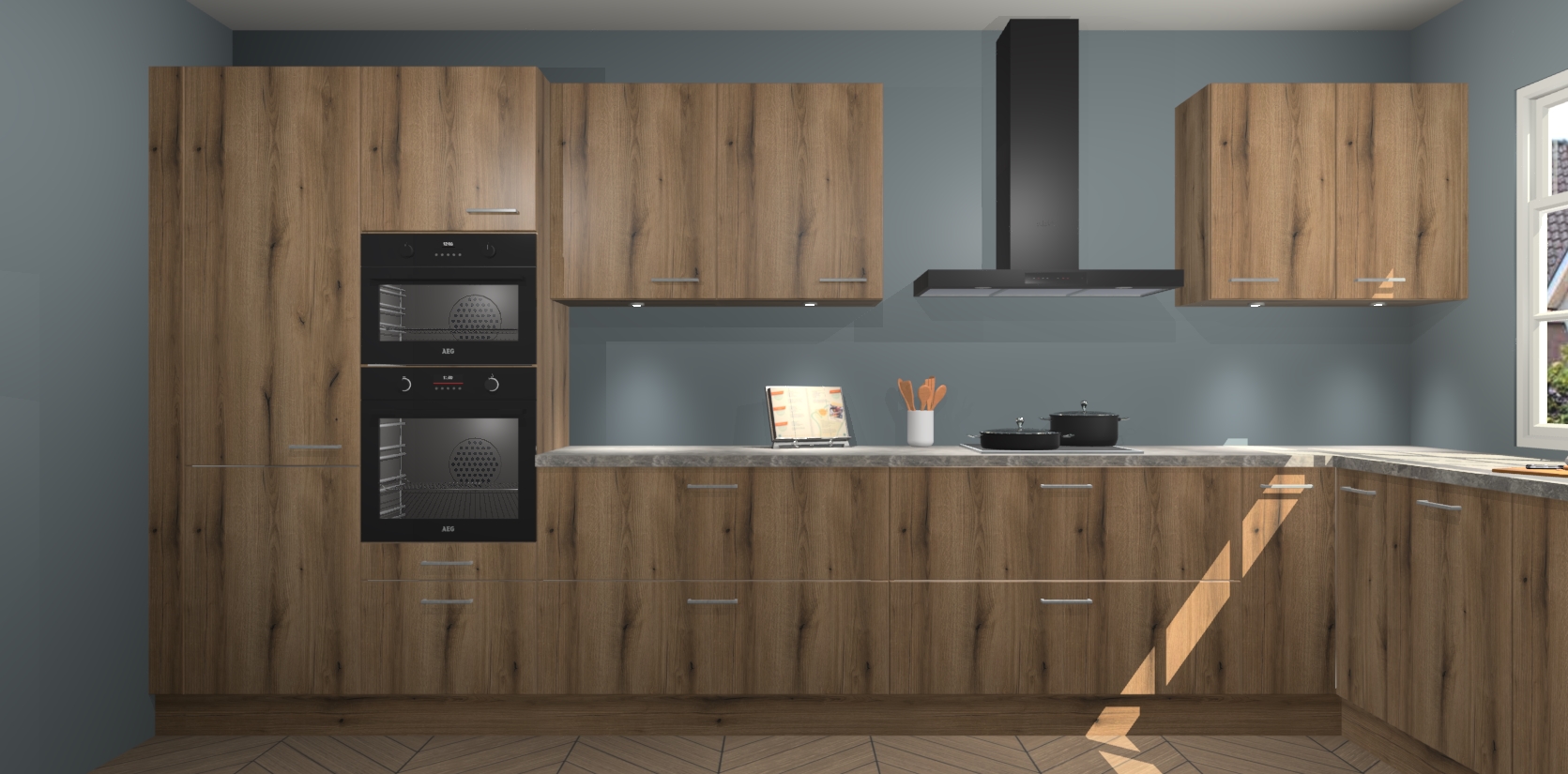 Kom dichtbij de perfecte keuken van uw dromen met de goud eiken keuken Graz. Met een prachtige houtlook en eigentijds ontwerp, straalt deze keuken warmte en sfeer uit. Of u nu liefhebber bent van traditionele of moderne stijlen, er is genoeg ruimte om aan al uw behoeften te voldoen.