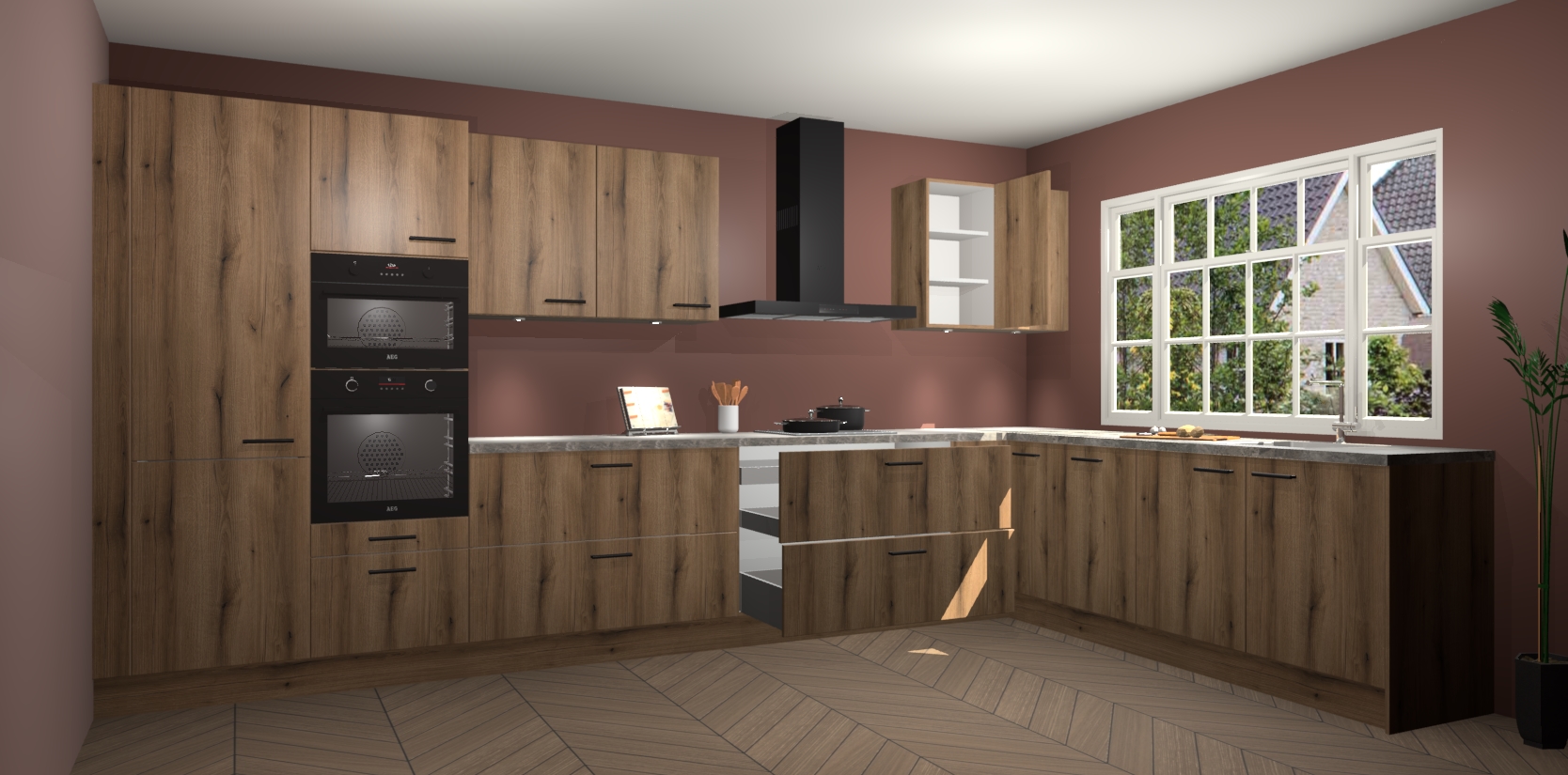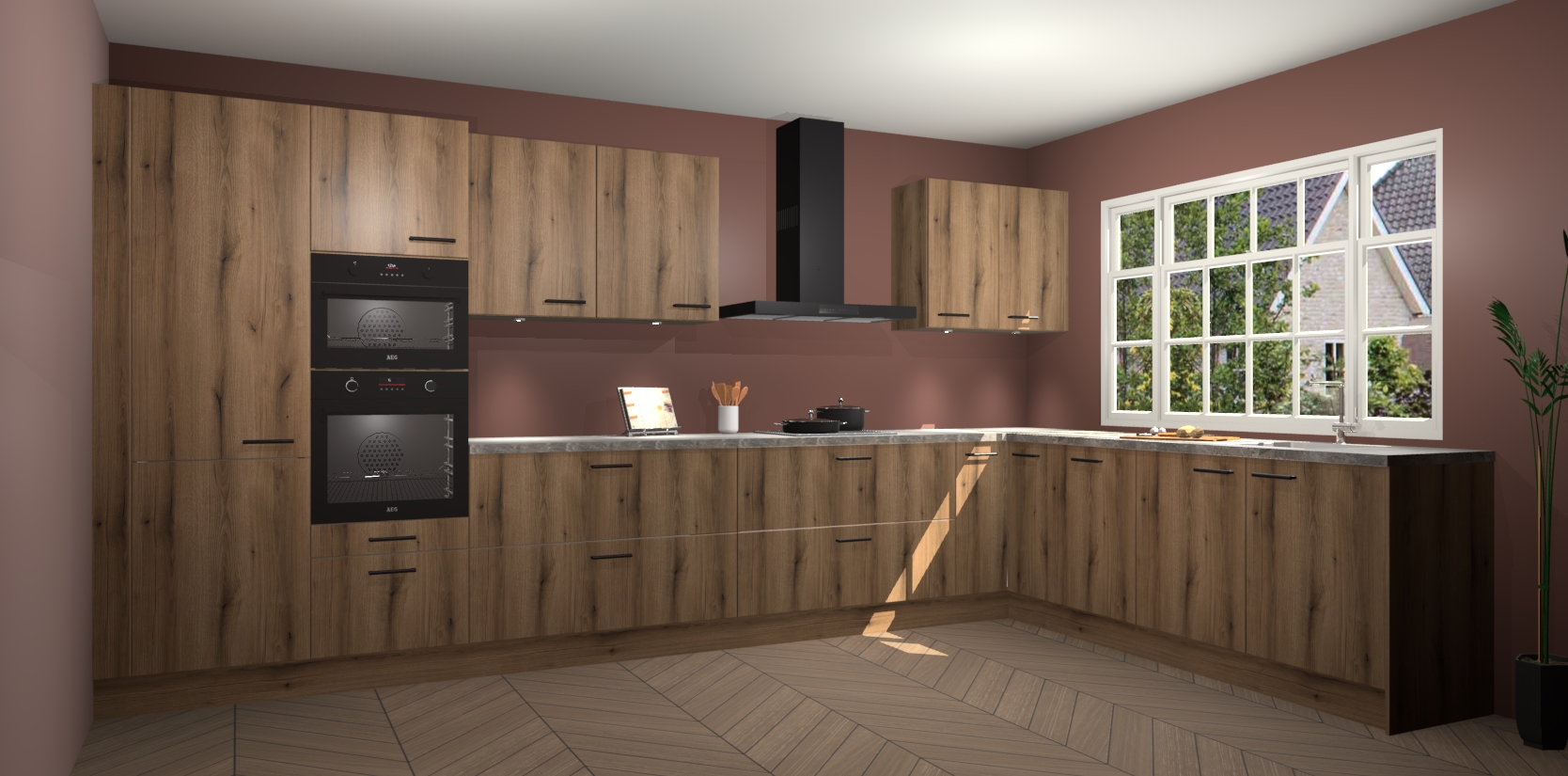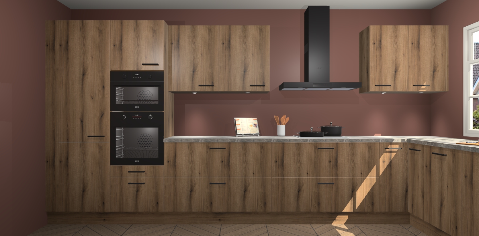 Kom dichtbij de perfecte keuken van uw dromen met de goud eiken keuken Graz. Met een prachtige houtlook en eigentijds ontwerp, straalt deze keuken warmte en sfeer uit. Of u nu liefhebber bent van traditionele of moderne stijlen, er is genoeg ruimte om aan al uw behoeften te voldoen.