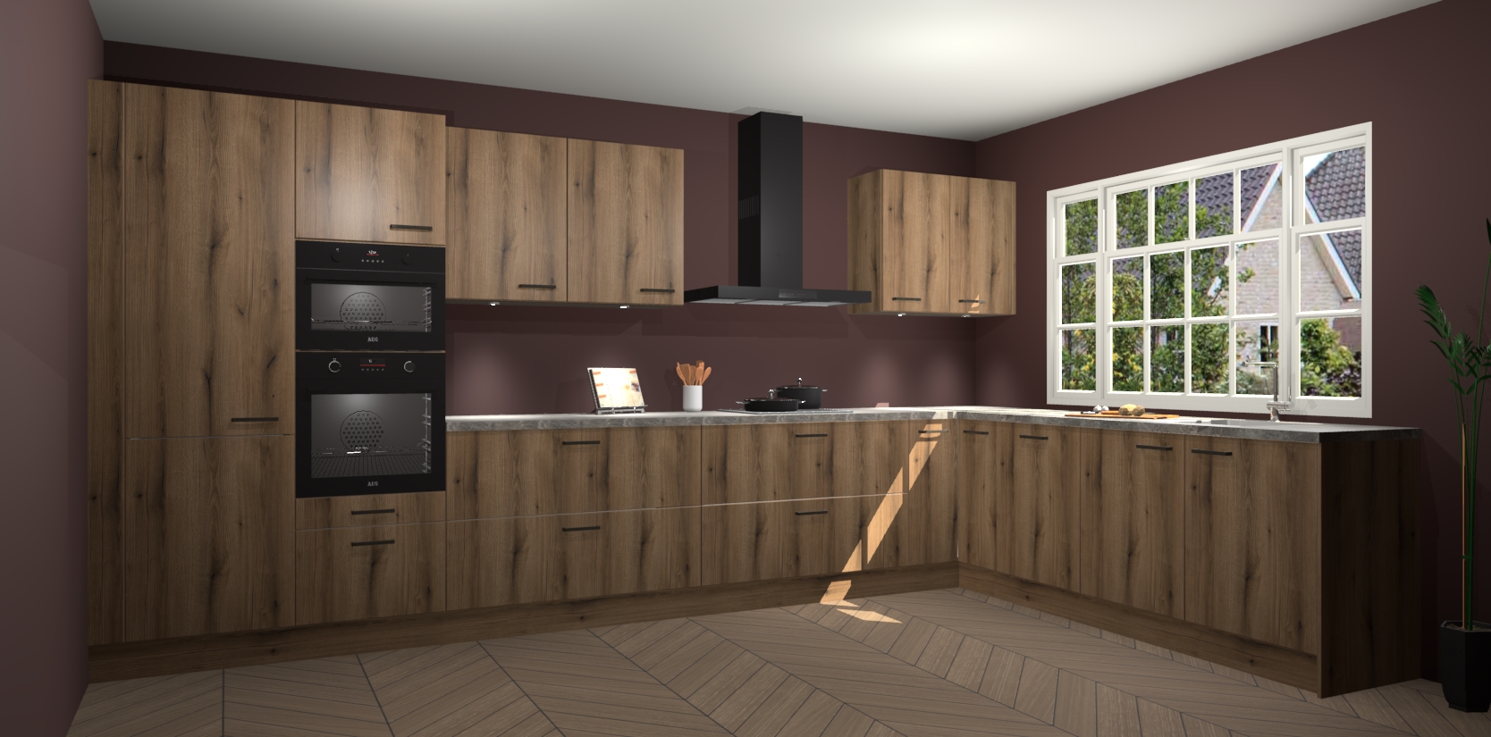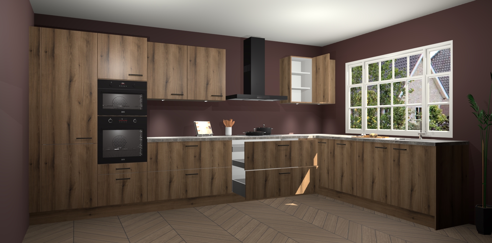 Kom dichtbij de perfecte keuken van uw dromen met de goud eiken keuken Graz. Met een prachtige houtlook en eigentijds ontwerp, straalt deze keuken warmte en sfeer uit. Of u nu liefhebber bent van traditionele of moderne stijlen, er is genoeg ruimte om aan al uw behoeften te voldoen.
