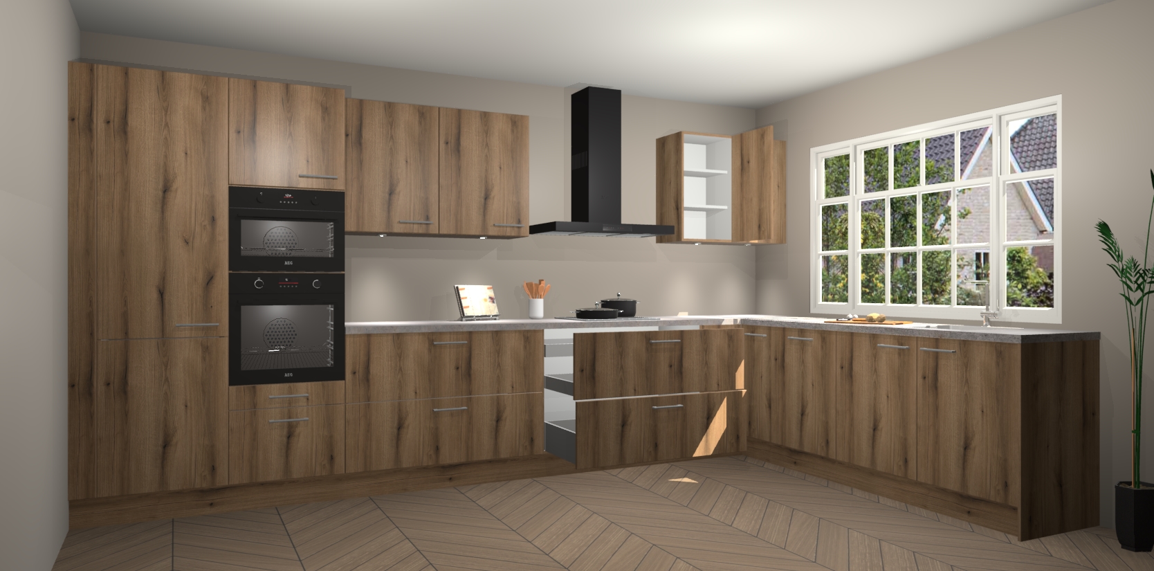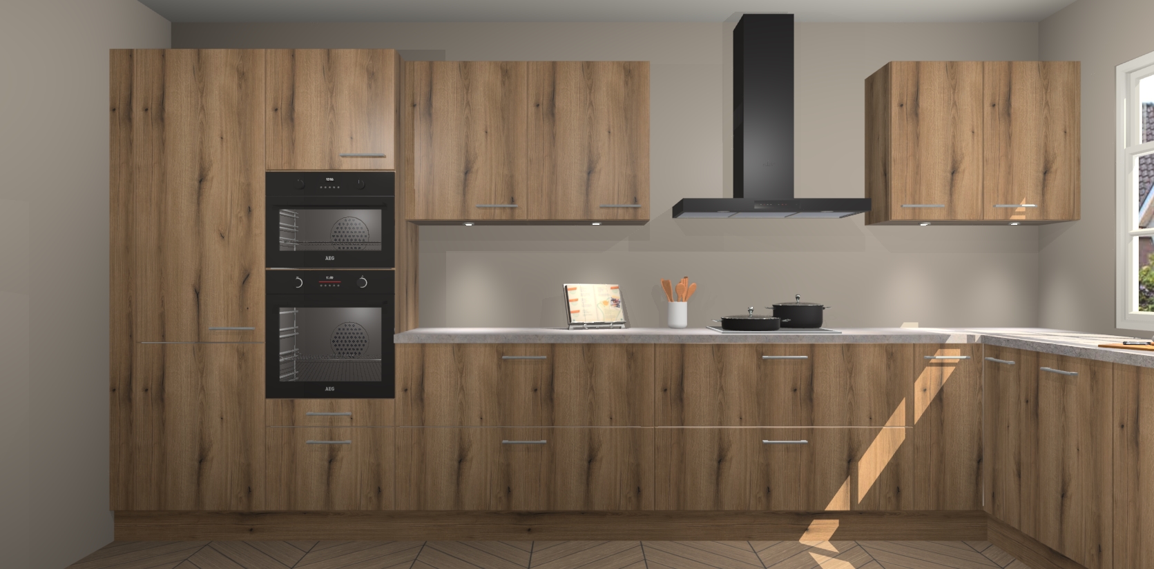 Kom dichtbij de perfecte keuken van uw dromen met de goud eiken keuken Graz. Met een prachtige houtlook en eigentijds ontwerp, straalt deze keuken warmte en sfeer uit. Of u nu liefhebber bent van traditionele of moderne stijlen, er is genoeg ruimte om aan al uw behoeften te voldoen.