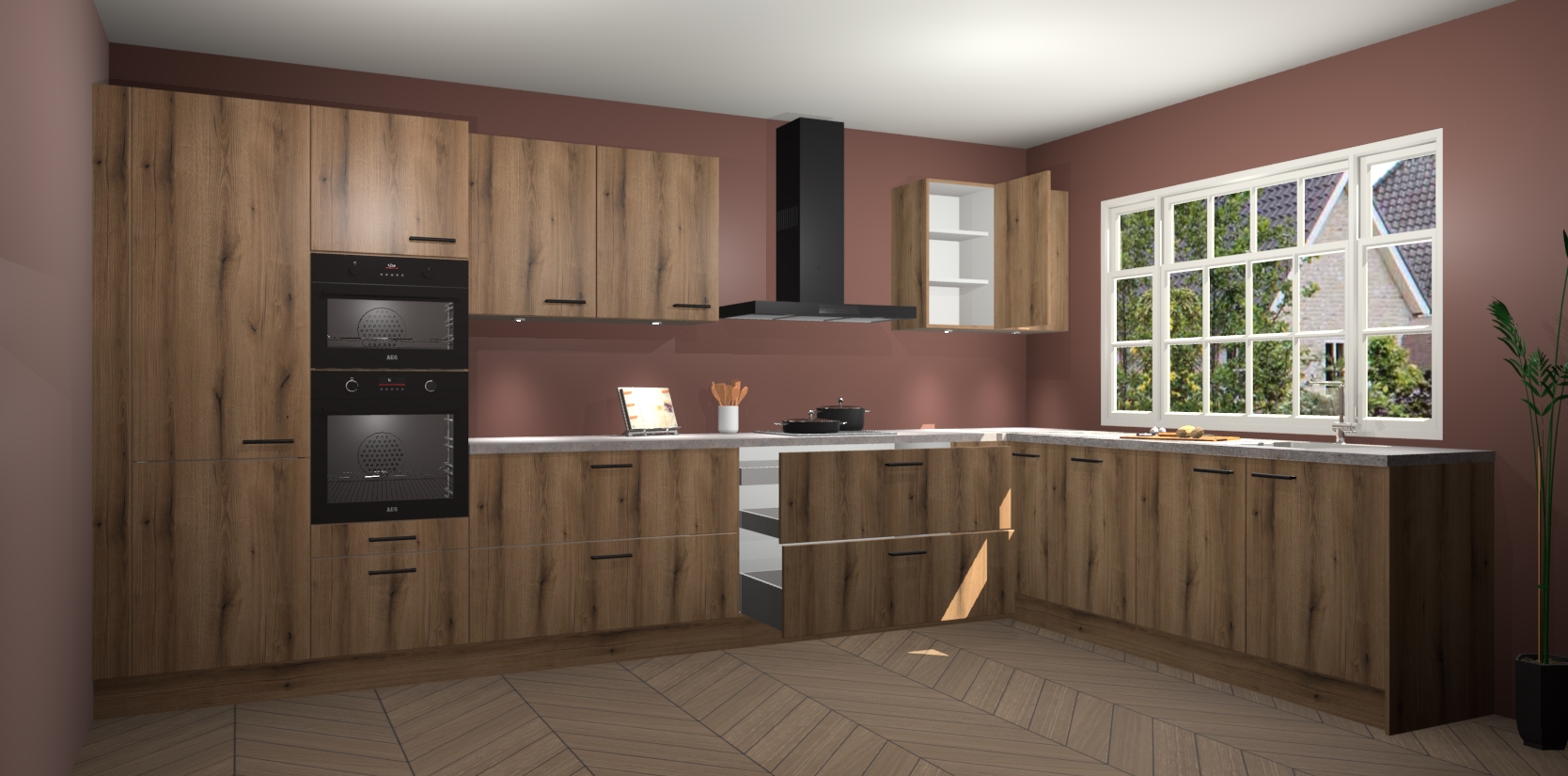 Kom dichtbij de perfecte keuken van uw dromen met de goud eiken keuken Graz. Met een prachtige houtlook en eigentijds ontwerp, straalt deze keuken warmte en sfeer uit. Of u nu liefhebber bent van traditionele of moderne stijlen, er is genoeg ruimte om aan al uw behoeften te voldoen.