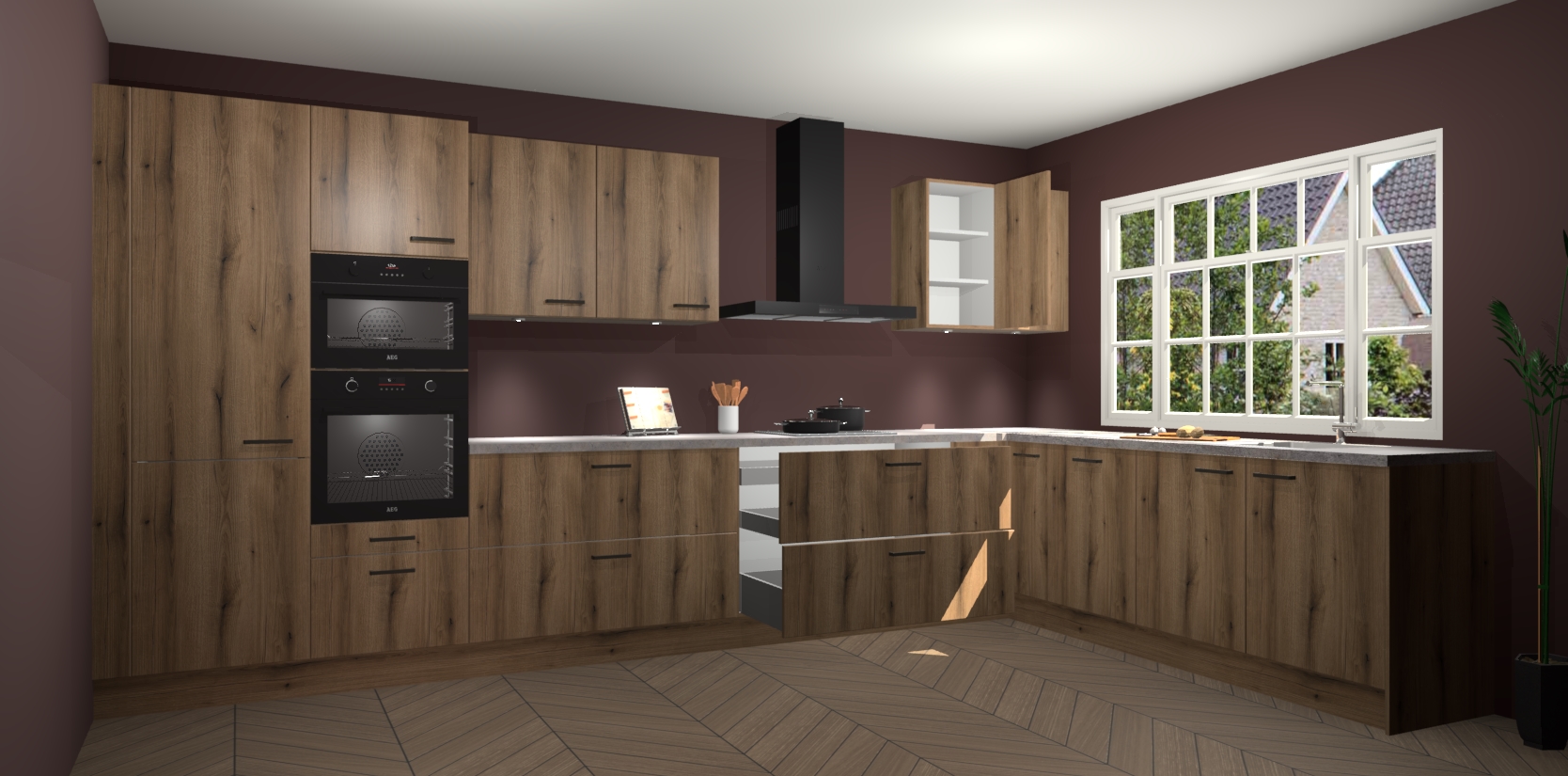 Kom dichtbij de perfecte keuken van uw dromen met de goud eiken keuken Graz. Met een prachtige houtlook en eigentijds ontwerp, straalt deze keuken warmte en sfeer uit. Of u nu liefhebber bent van traditionele of moderne stijlen, er is genoeg ruimte om aan al uw behoeften te voldoen.