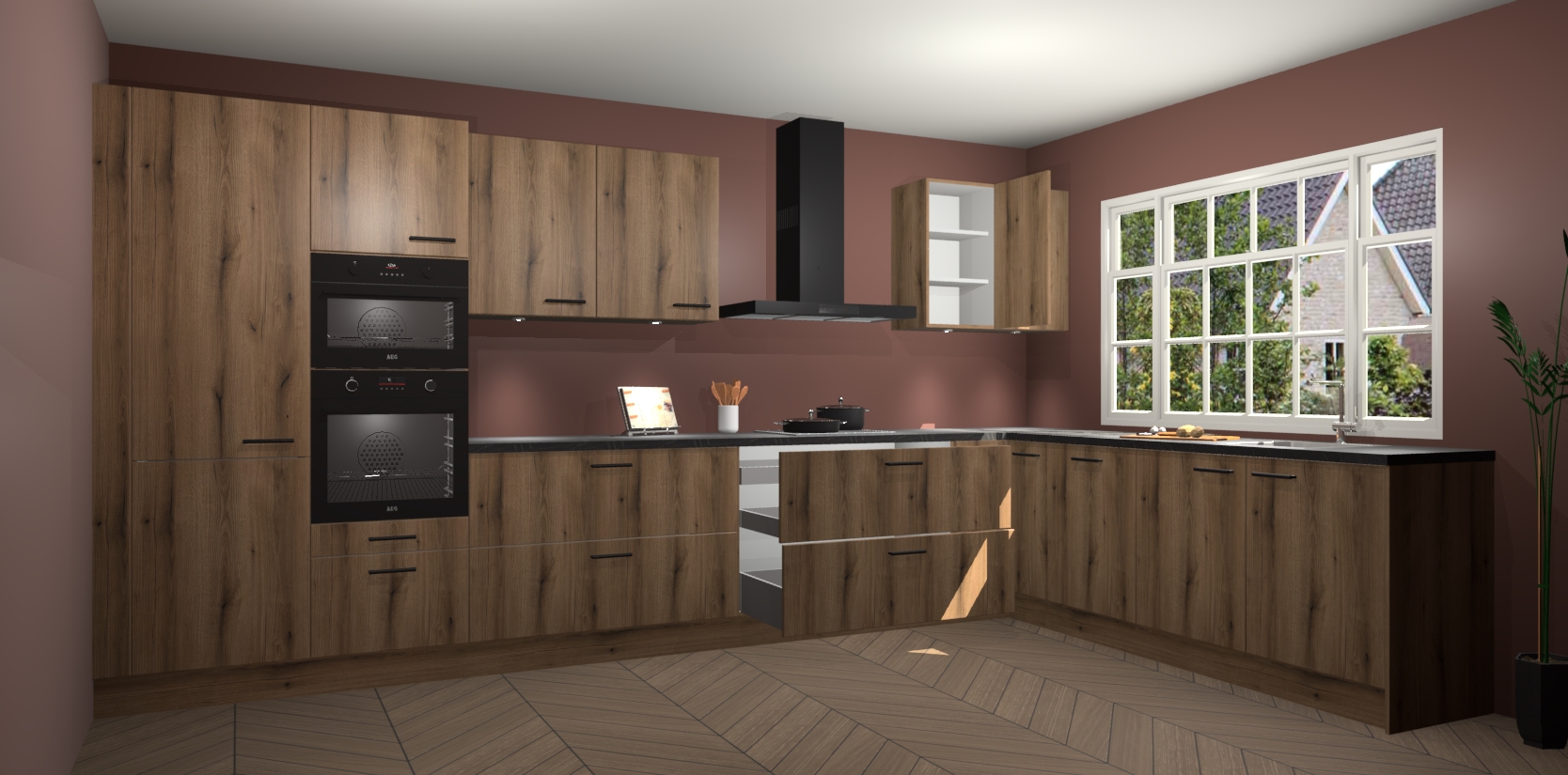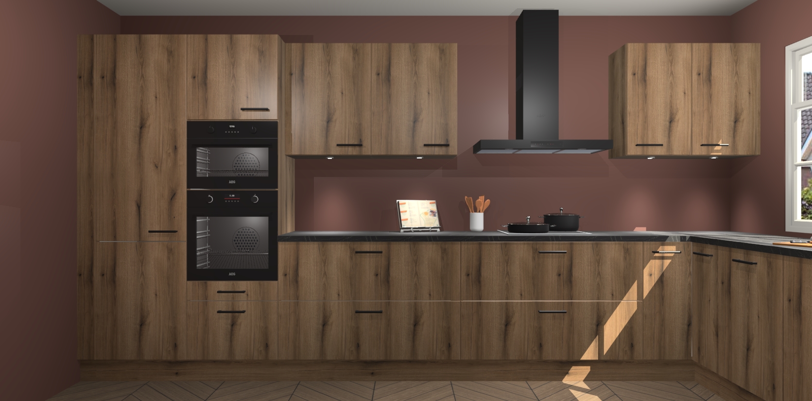 Kom dichtbij de perfecte keuken van uw dromen met de goud eiken keuken Graz. Met een prachtige houtlook en eigentijds ontwerp, straalt deze keuken warmte en sfeer uit. Of u nu liefhebber bent van traditionele of moderne stijlen, er is genoeg ruimte om aan al uw behoeften te voldoen.