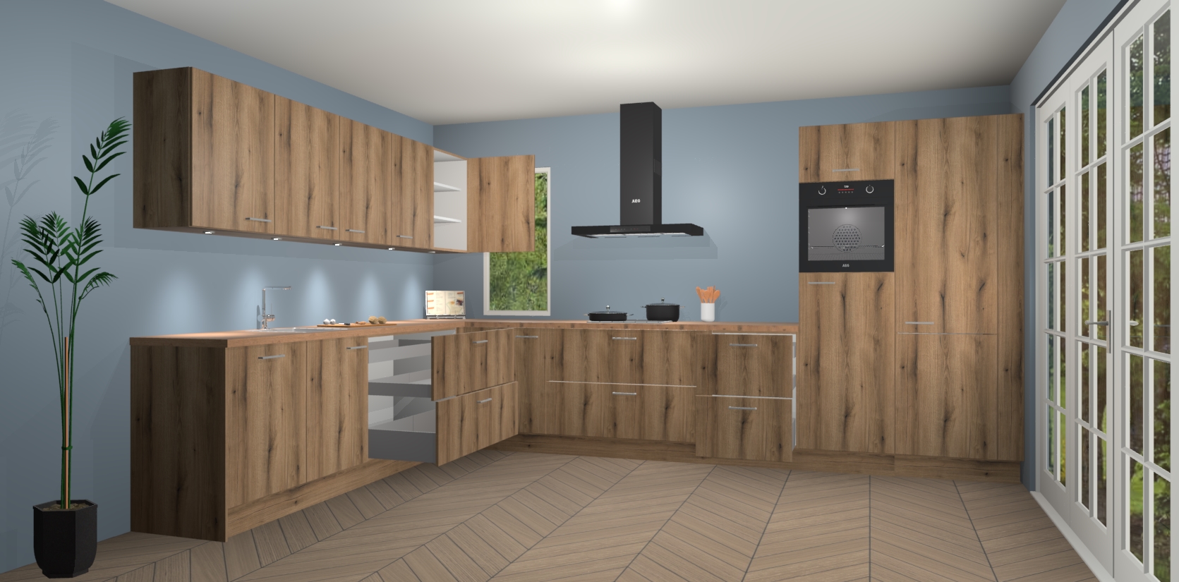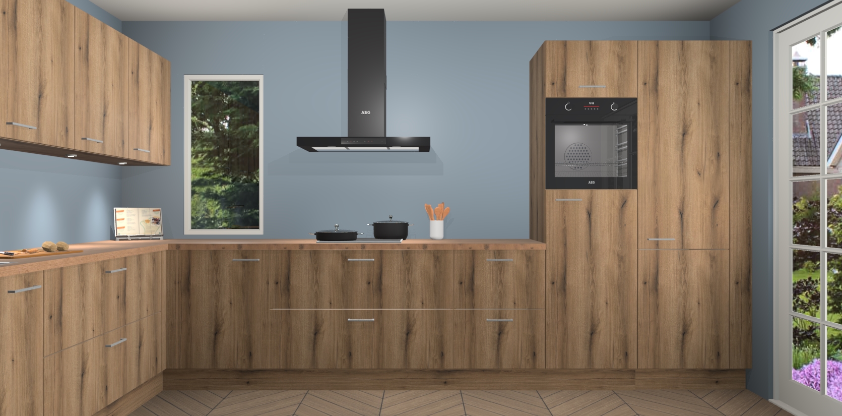 Heeft u nog apparatuur nodig? Geen probleem: de goud eiken keuken Harare bevat vijf ingebouwde apparaten - een oven, inductiekookplaat, afzuigkap, vaatwasser en koelkast - die gemakkelijk kunnen worden bijgewerkt naar AEG na bestelling. En als dat nog niet genoeg is; onze kasten worden pre-geassembleerd geleverd en zijn verkrijgbaar tegen een vastgeroeste lage prijs! U hoeft nooit meer te zoeken naar goede kwaliteit en service want onze producten hebben echt Duitse kwaliteit.