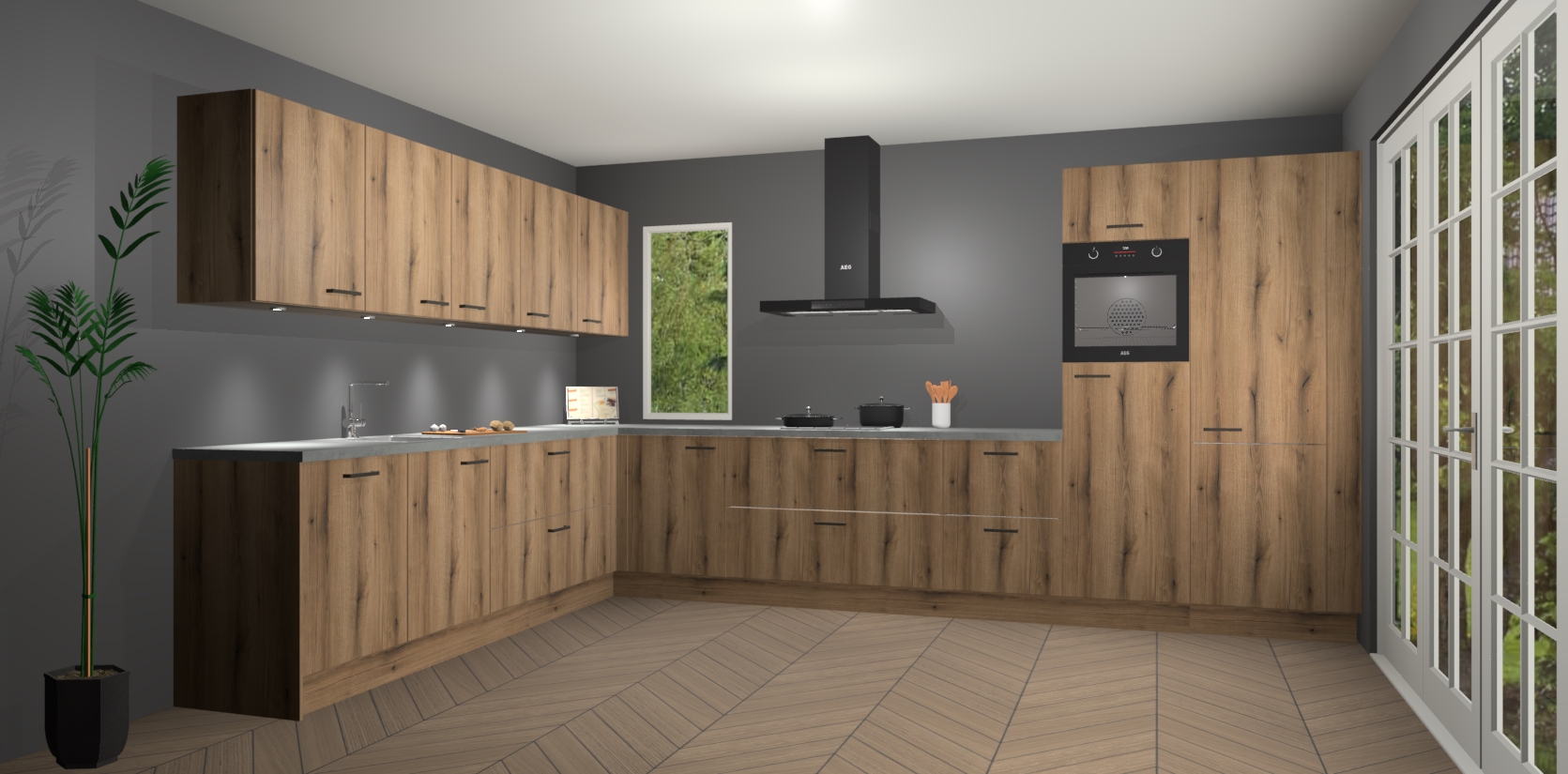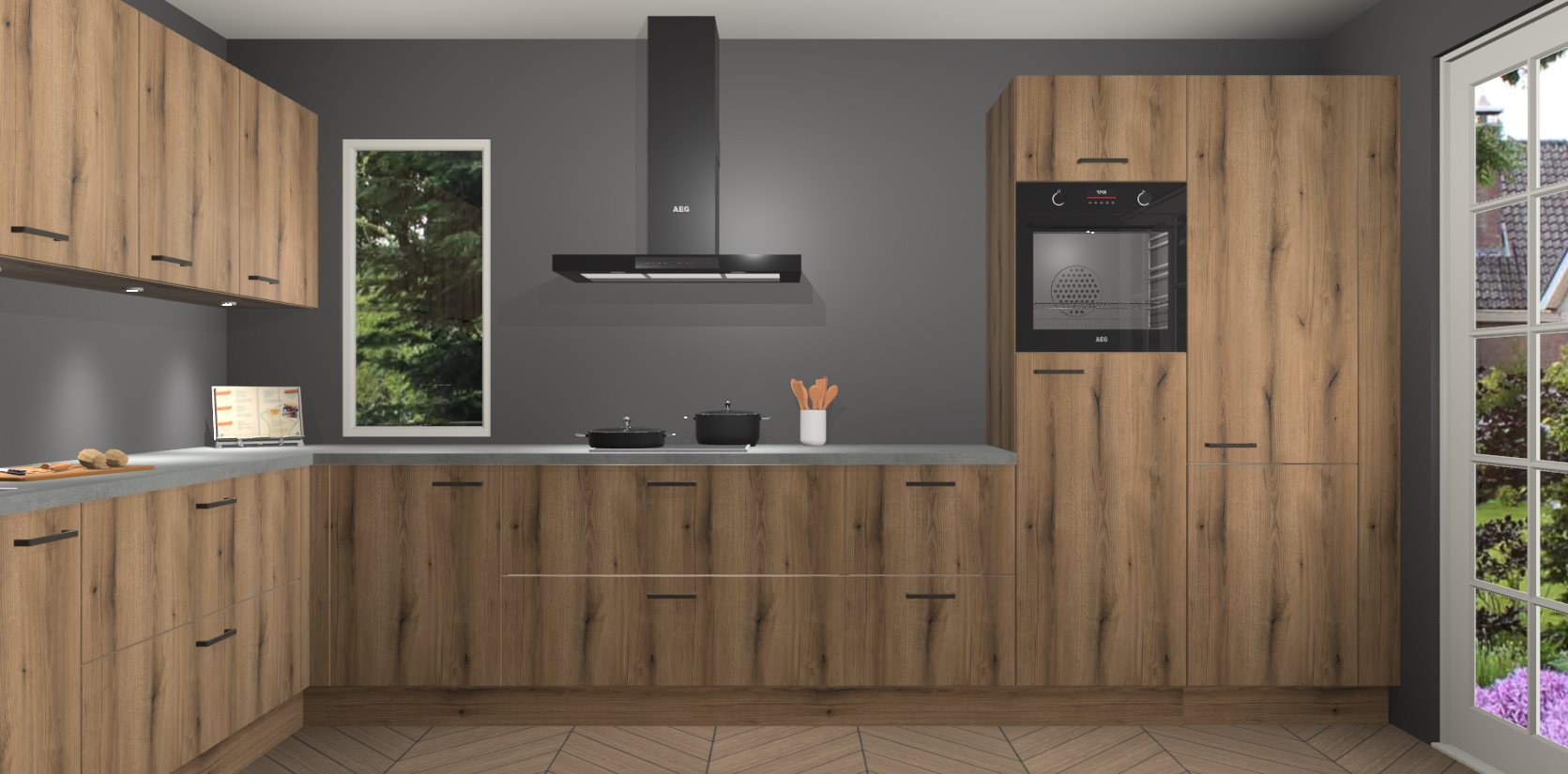 Heeft u nog apparatuur nodig? Geen probleem: de goud eiken keuken Harare bevat vijf ingebouwde apparaten - een oven, inductiekookplaat, afzuigkap, vaatwasser en koelkast - die gemakkelijk kunnen worden bijgewerkt naar AEG na bestelling. En als dat nog niet genoeg is; onze kasten worden pre-geassembleerd geleverd en zijn verkrijgbaar tegen een vastgeroeste lage prijs! U hoeft nooit meer te zoeken naar goede kwaliteit en service want onze producten hebben echt Duitse kwaliteit.