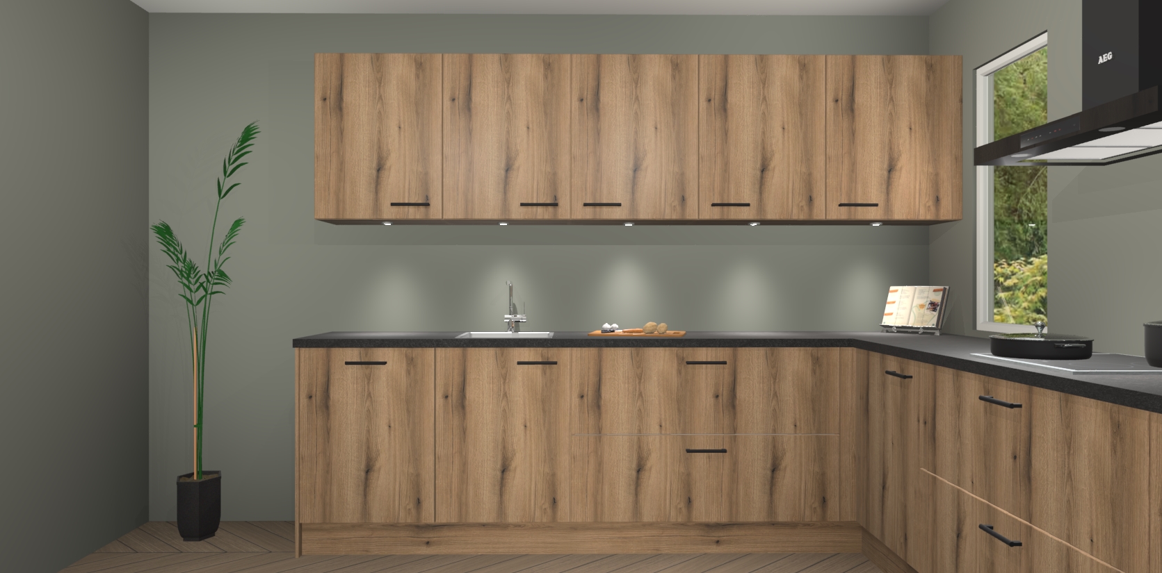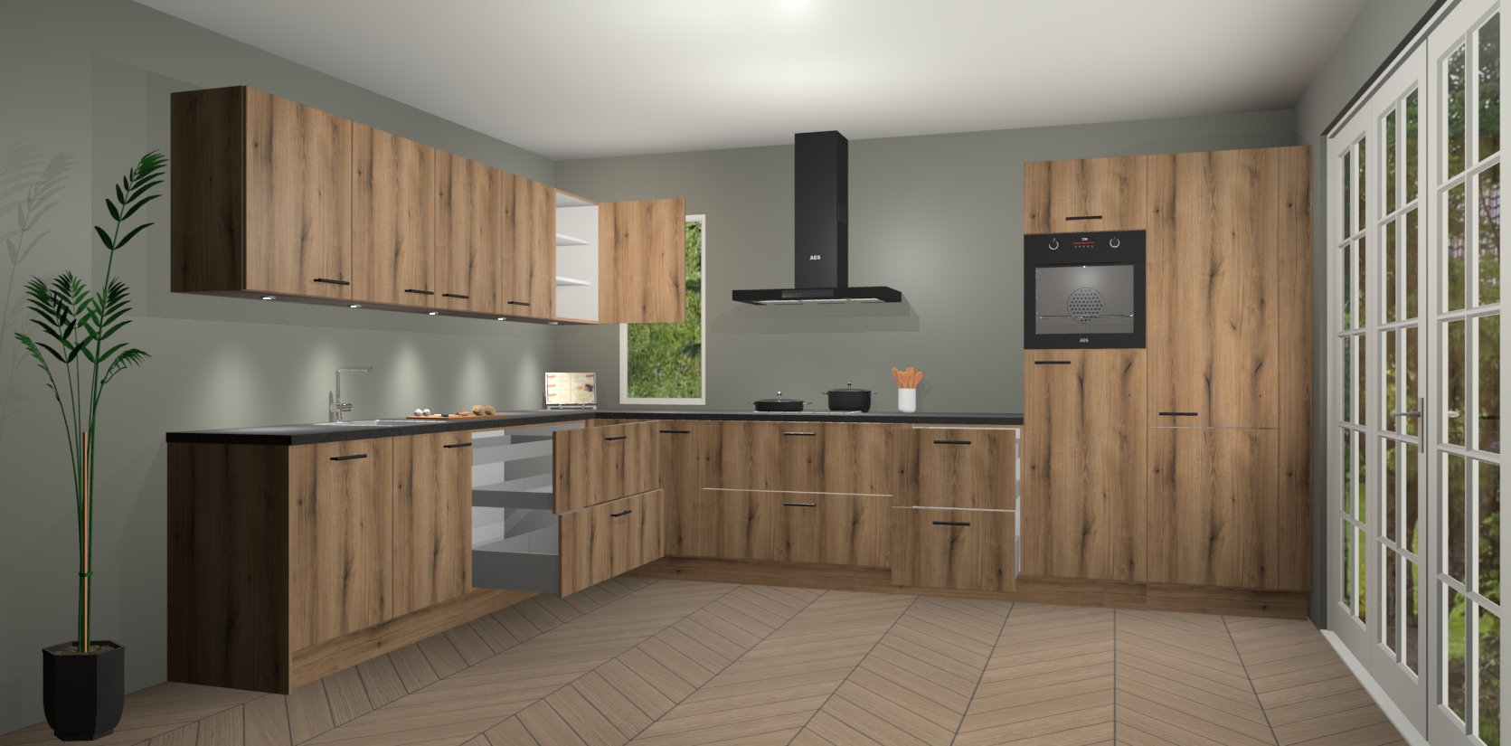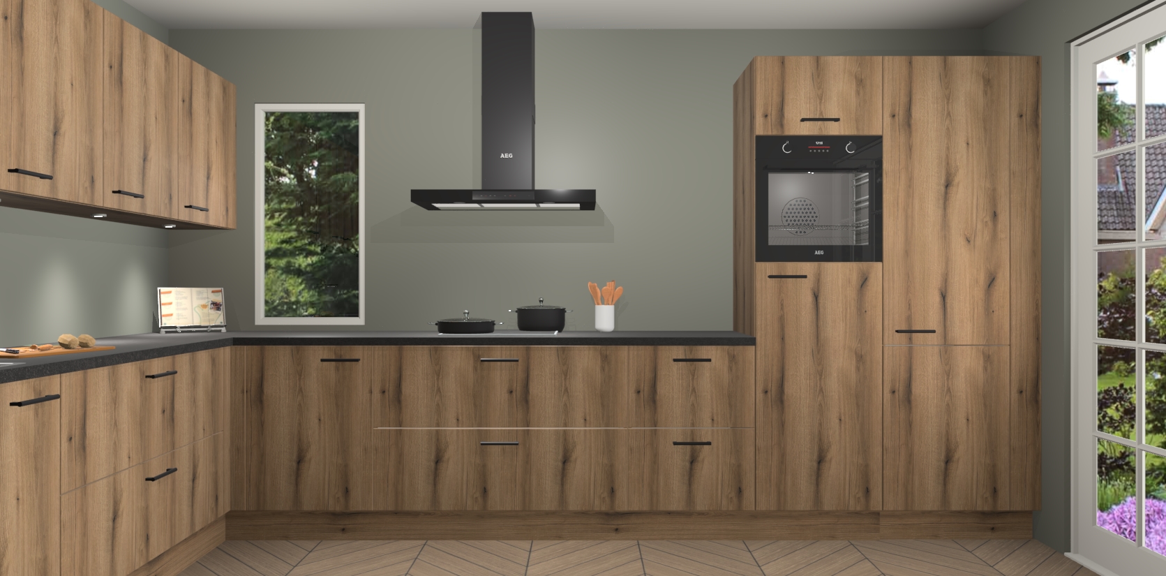 Heeft u nog apparatuur nodig? Geen probleem: de goud eiken keuken Harare bevat vijf ingebouwde apparaten - een oven, inductiekookplaat, afzuigkap, vaatwasser en koelkast - die gemakkelijk kunnen worden bijgewerkt naar AEG na bestelling. En als dat nog niet genoeg is; onze kasten worden pre-geassembleerd geleverd en zijn verkrijgbaar tegen een vastgeroeste lage prijs! U hoeft nooit meer te zoeken naar goede kwaliteit en service want onze producten hebben echt Duitse kwaliteit.