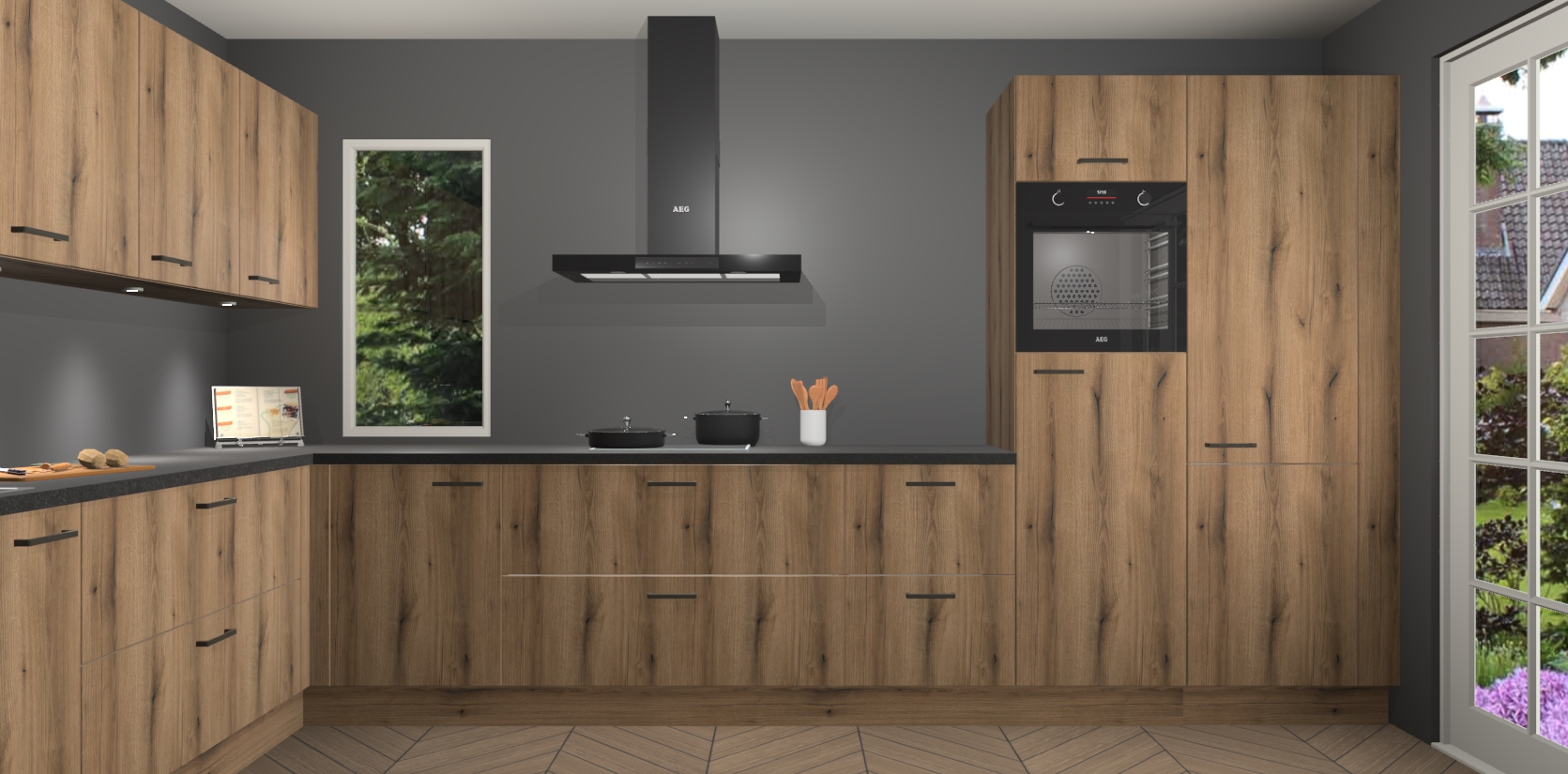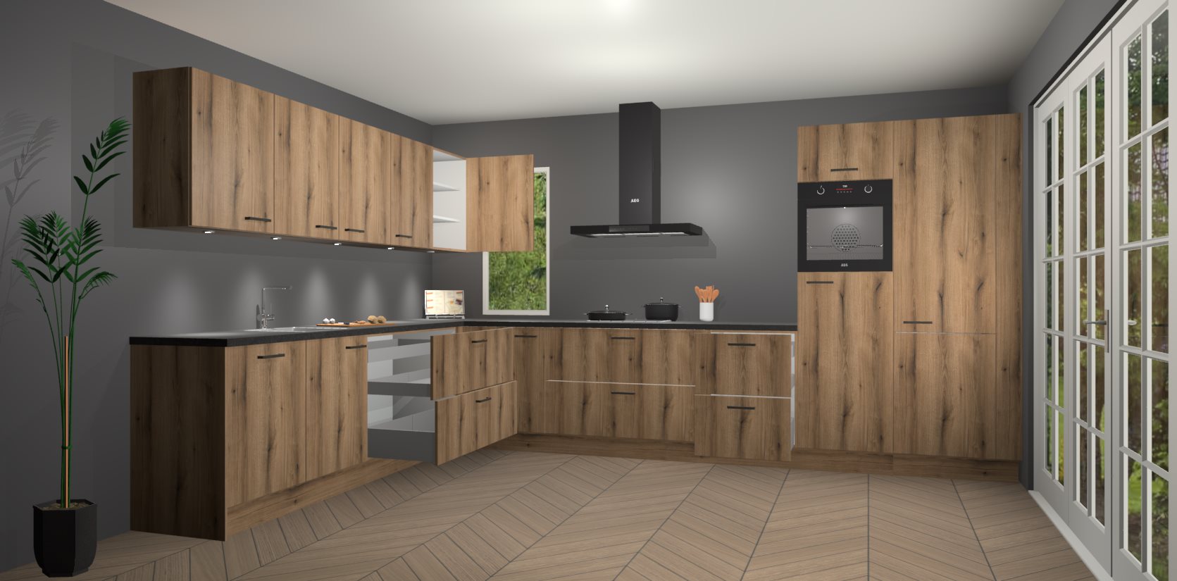 Heeft u nog apparatuur nodig? Geen probleem: de goud eiken keuken Harare bevat vijf ingebouwde apparaten - een oven, inductiekookplaat, afzuigkap, vaatwasser en koelkast - die gemakkelijk kunnen worden bijgewerkt naar AEG na bestelling. En als dat nog niet genoeg is; onze kasten worden pre-geassembleerd geleverd en zijn verkrijgbaar tegen een vastgeroeste lage prijs! U hoeft nooit meer te zoeken naar goede kwaliteit en service want onze producten hebben echt Duitse kwaliteit.