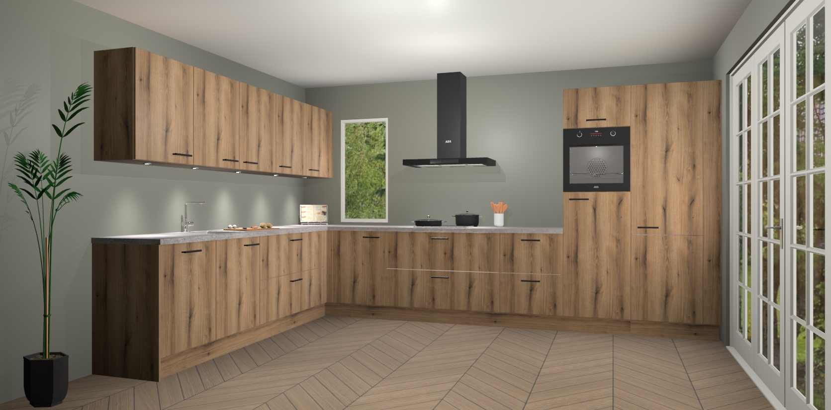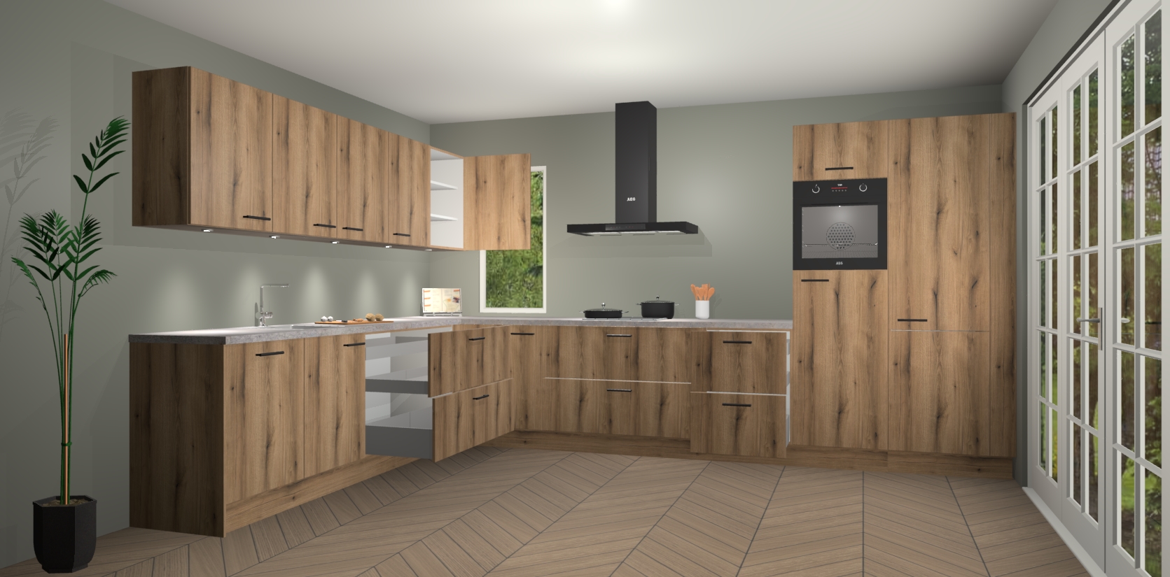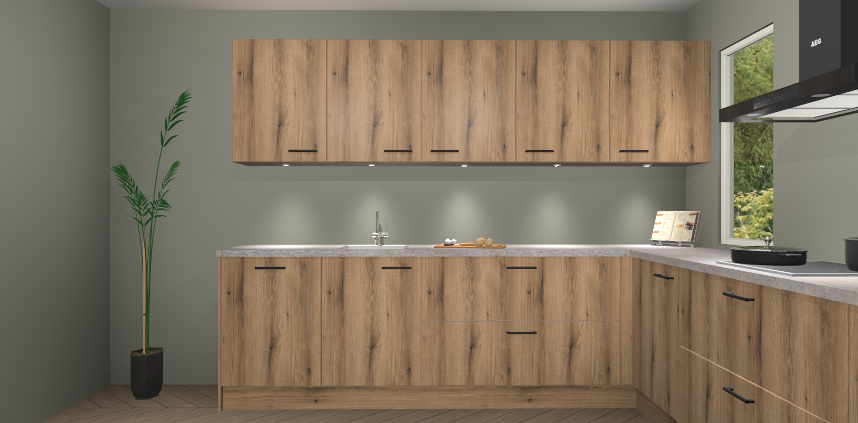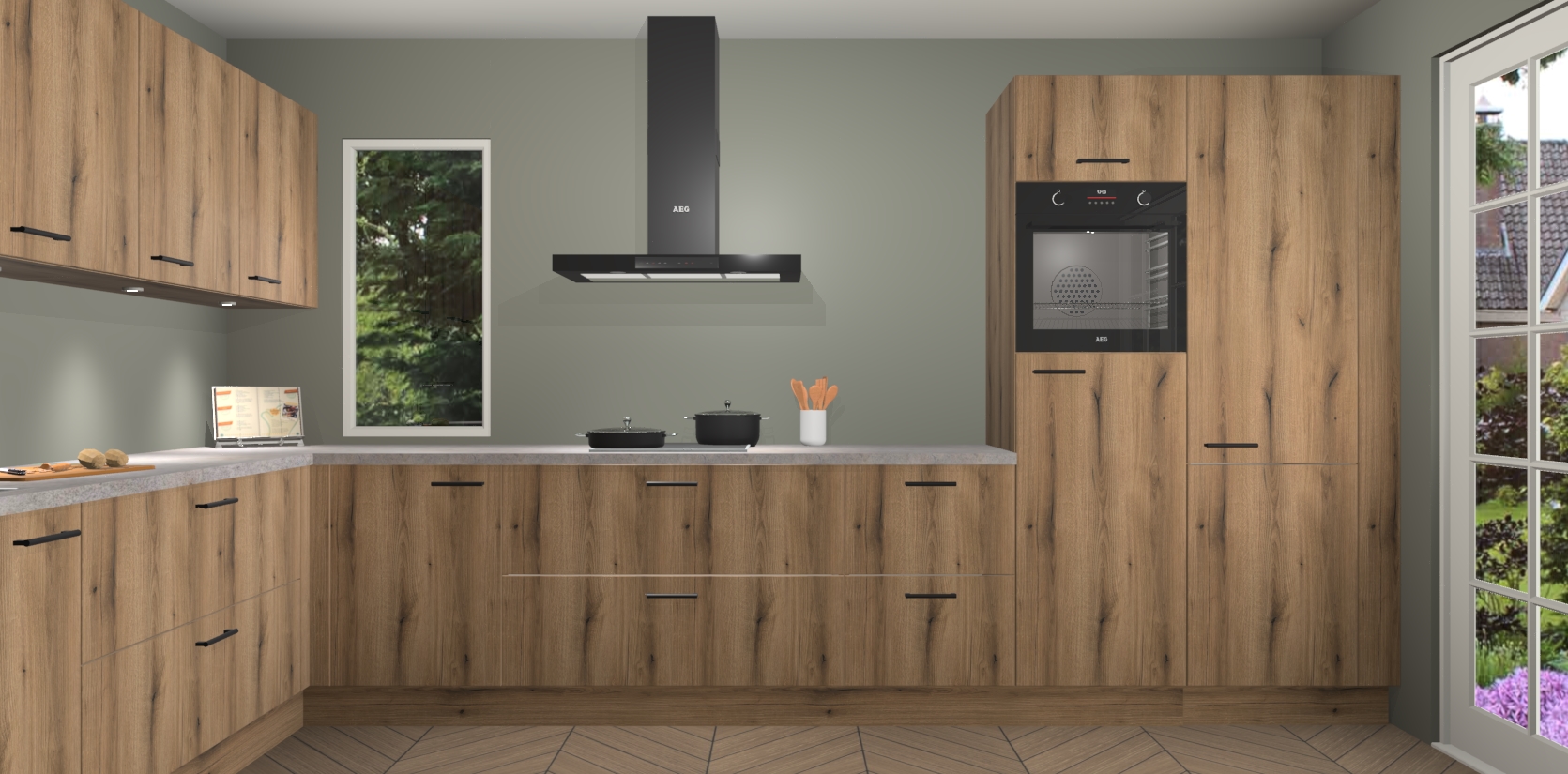 Heeft u nog apparatuur nodig? Geen probleem: de goud eiken keuken Harare bevat vijf ingebouwde apparaten - een oven, inductiekookplaat, afzuigkap, vaatwasser en koelkast - die gemakkelijk kunnen worden bijgewerkt naar AEG na bestelling. En als dat nog niet genoeg is; onze kasten worden pre-geassembleerd geleverd en zijn verkrijgbaar tegen een vastgeroeste lage prijs! U hoeft nooit meer te zoeken naar goede kwaliteit en service want onze producten hebben echt Duitse kwaliteit.