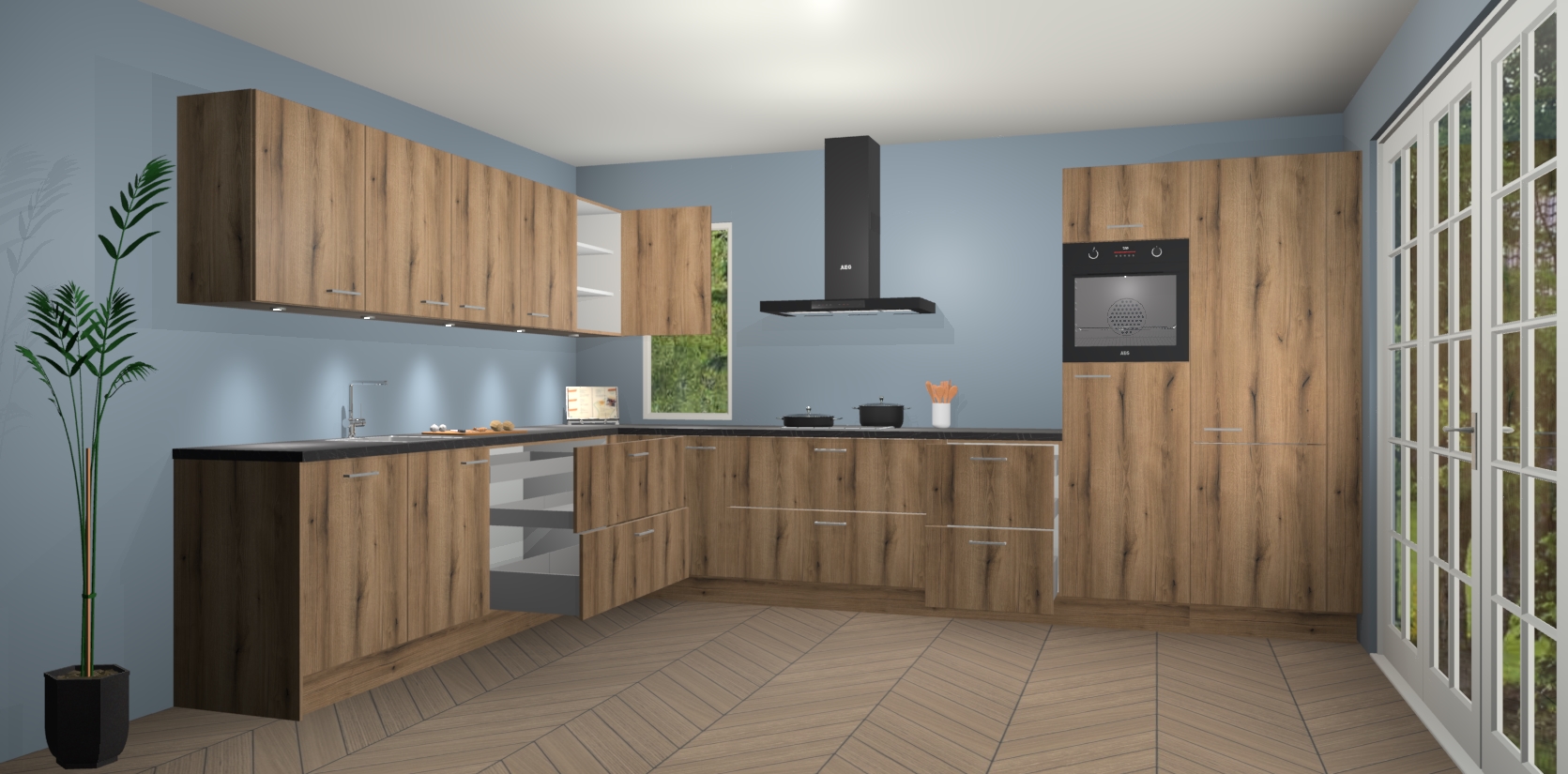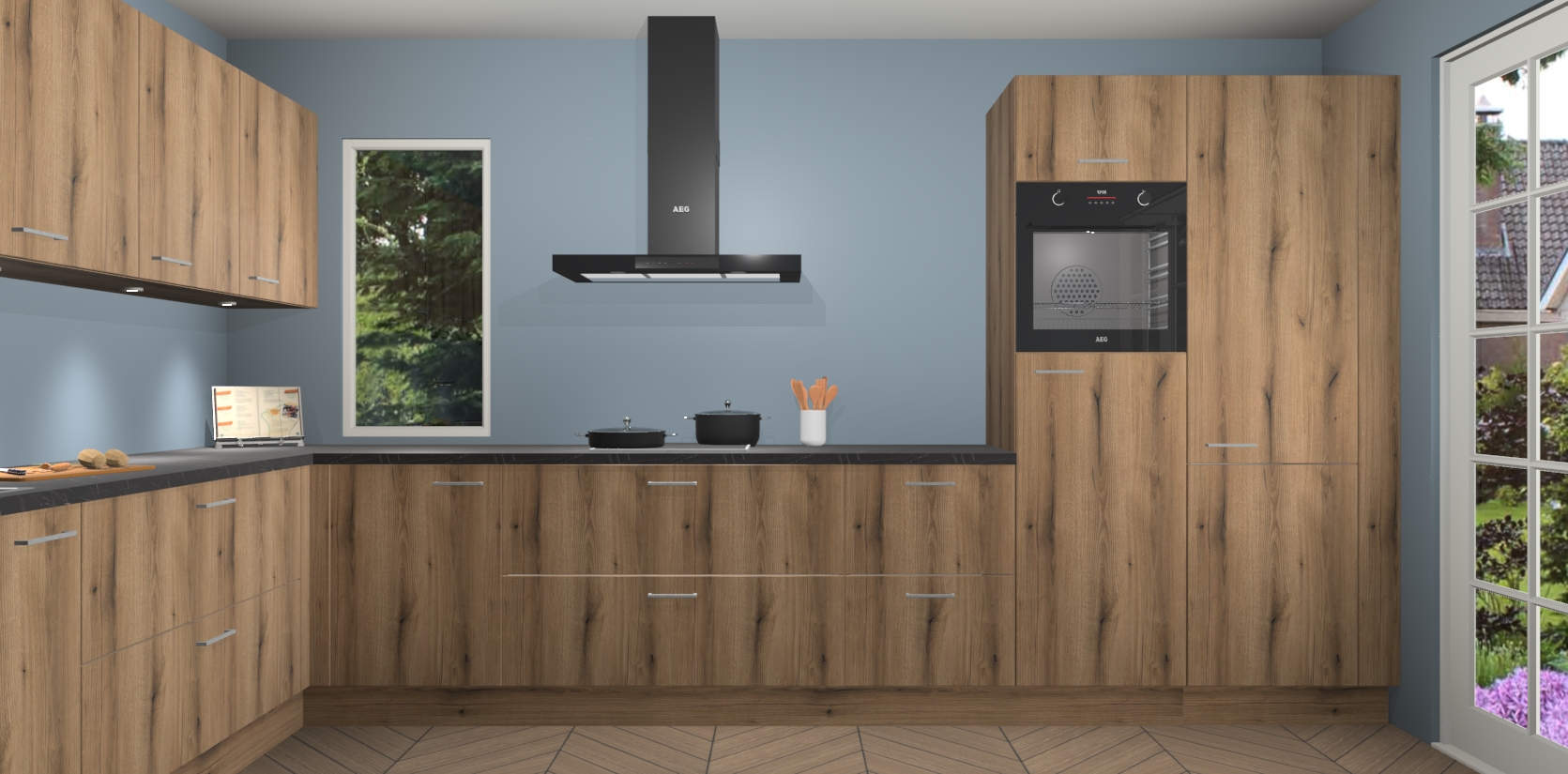 Heeft u nog apparatuur nodig? Geen probleem: de goud eiken keuken Harare bevat vijf ingebouwde apparaten - een oven, inductiekookplaat, afzuigkap, vaatwasser en koelkast - die gemakkelijk kunnen worden bijgewerkt naar AEG na bestelling. En als dat nog niet genoeg is; onze kasten worden pre-geassembleerd geleverd en zijn verkrijgbaar tegen een vastgeroeste lage prijs! U hoeft nooit meer te zoeken naar goede kwaliteit en service want onze producten hebben echt Duitse kwaliteit.