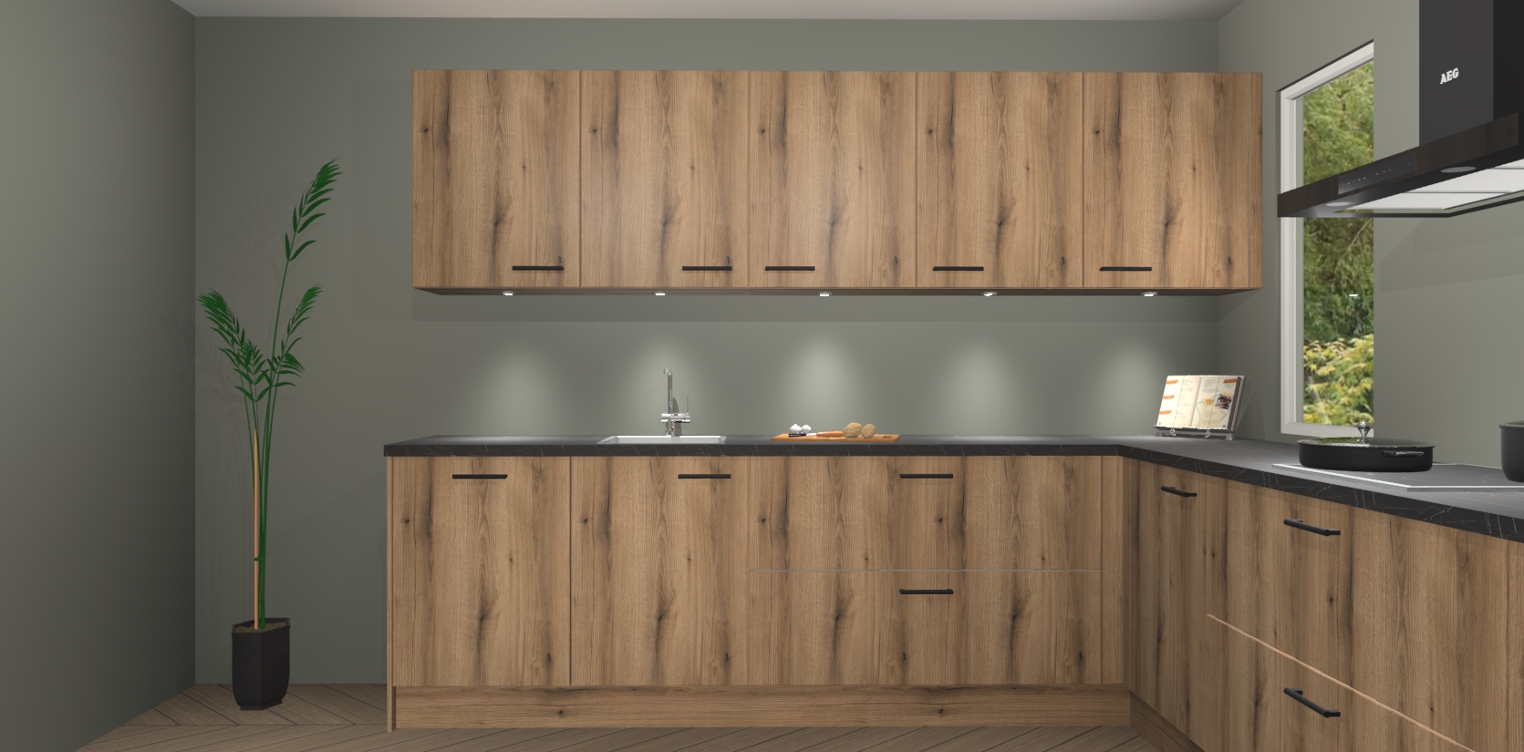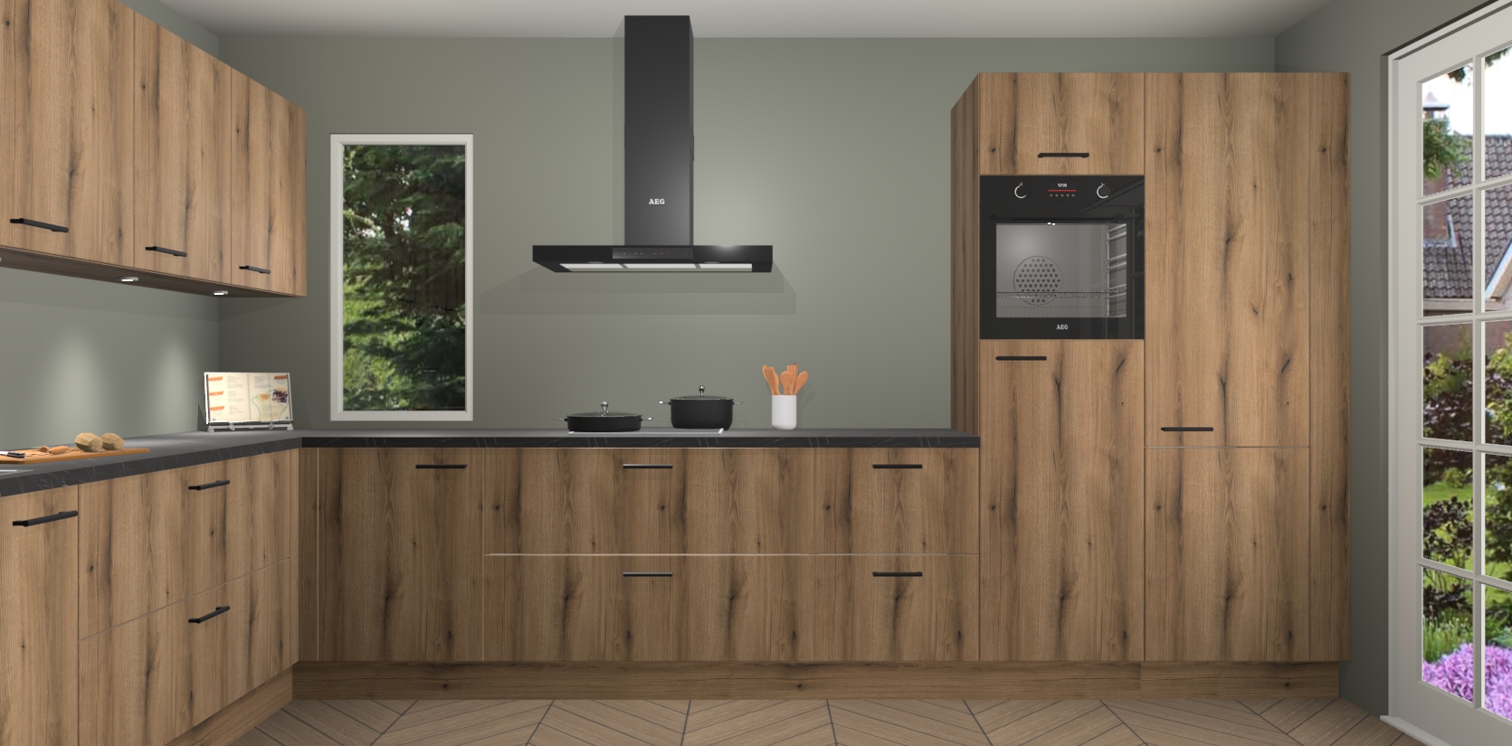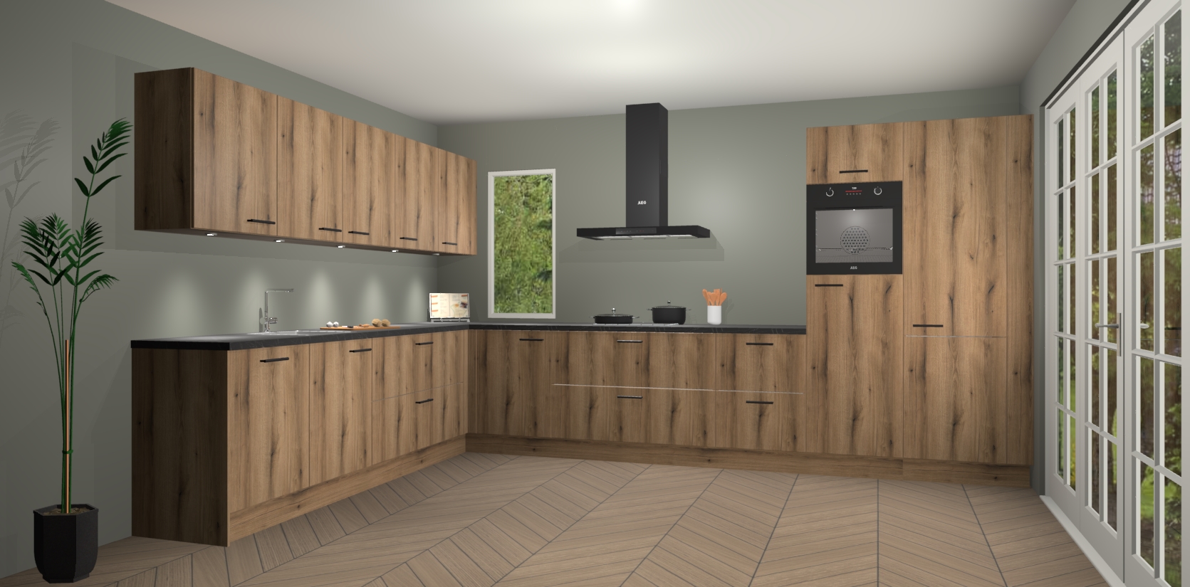 Heeft u nog apparatuur nodig? Geen probleem: de goud eiken keuken Harare bevat vijf ingebouwde apparaten - een oven, inductiekookplaat, afzuigkap, vaatwasser en koelkast - die gemakkelijk kunnen worden bijgewerkt naar AEG na bestelling. En als dat nog niet genoeg is; onze kasten worden pre-geassembleerd geleverd en zijn verkrijgbaar tegen een vastgeroeste lage prijs! U hoeft nooit meer te zoeken naar goede kwaliteit en service want onze producten hebben echt Duitse kwaliteit.