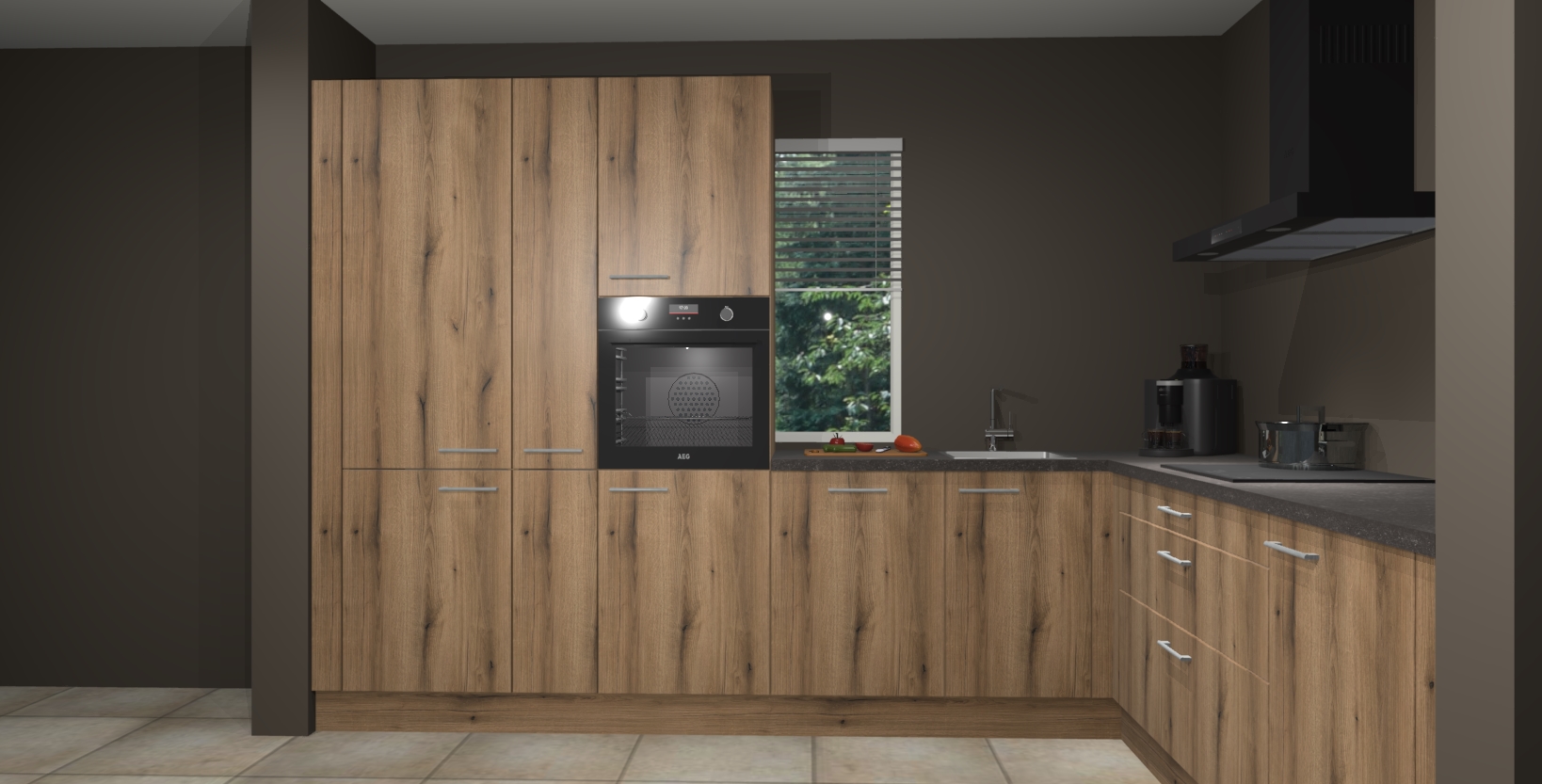 Met een modern, tijdloos design en ruime opslagruimte, zult u zich in no-time thuis voelen in uw nieuwe keuken. Uw leven wordt eenvoudiger met de soft-close deuren die voor het ultieme stille comfort zorgen - geen geluid dat u stoort terwijl u kookt. Ook is de keuken voorzien van 5 ingebouwde apparaten: een oven, inductie kookplaat, afzuigkap, vaatwasser en koelkast. Deze kunnen gemakkelijk na bestelling worden bijgewerkt naar AEG - waardoor uw luxe ervaring compleet is.