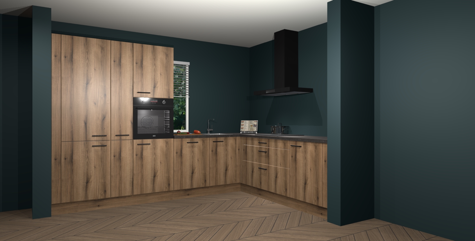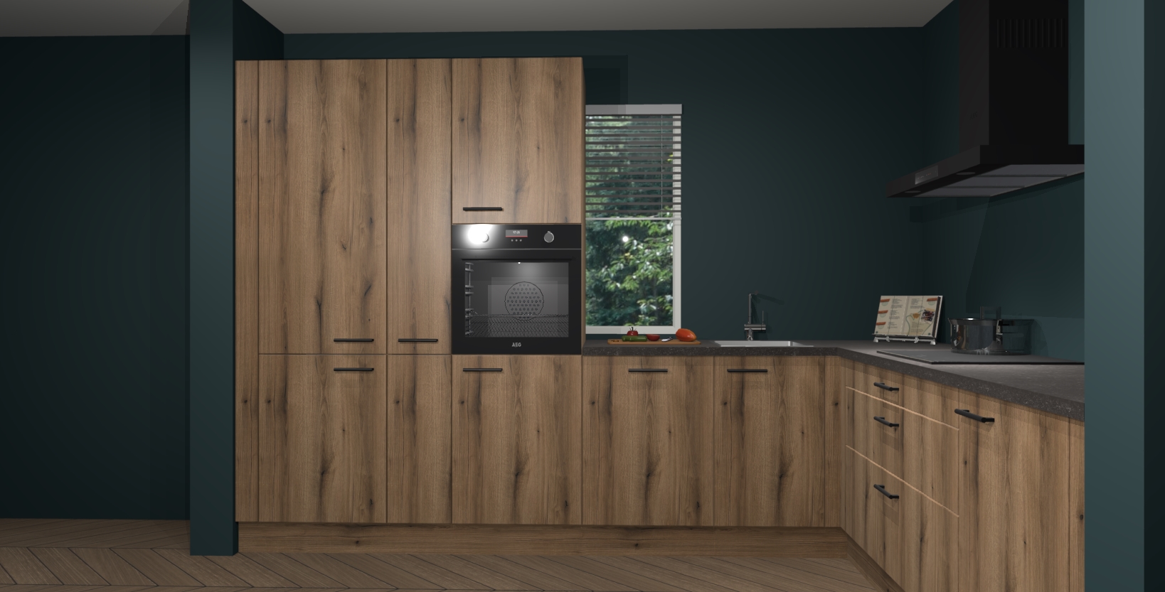 Met een modern, tijdloos design en ruime opslagruimte, zult u zich in no-time thuis voelen in uw nieuwe keuken. Uw leven wordt eenvoudiger met de soft-close deuren die voor het ultieme stille comfort zorgen - geen geluid dat u stoort terwijl u kookt. Ook is de keuken voorzien van 5 ingebouwde apparaten: een oven, inductie kookplaat, afzuigkap, vaatwasser en koelkast. Deze kunnen gemakkelijk na bestelling worden bijgewerkt naar AEG - waardoor uw luxe ervaring compleet is.