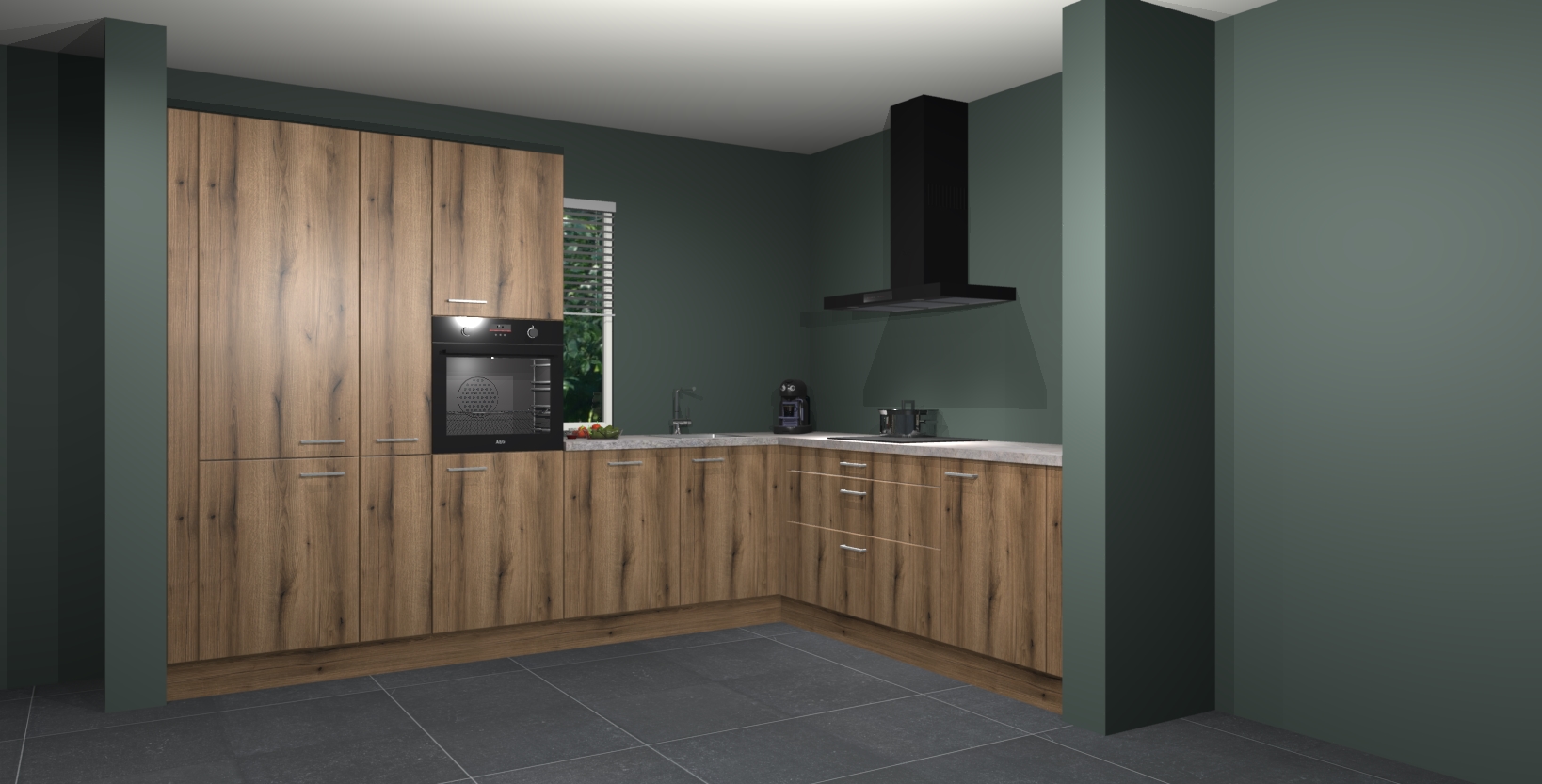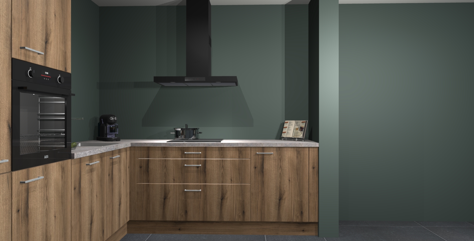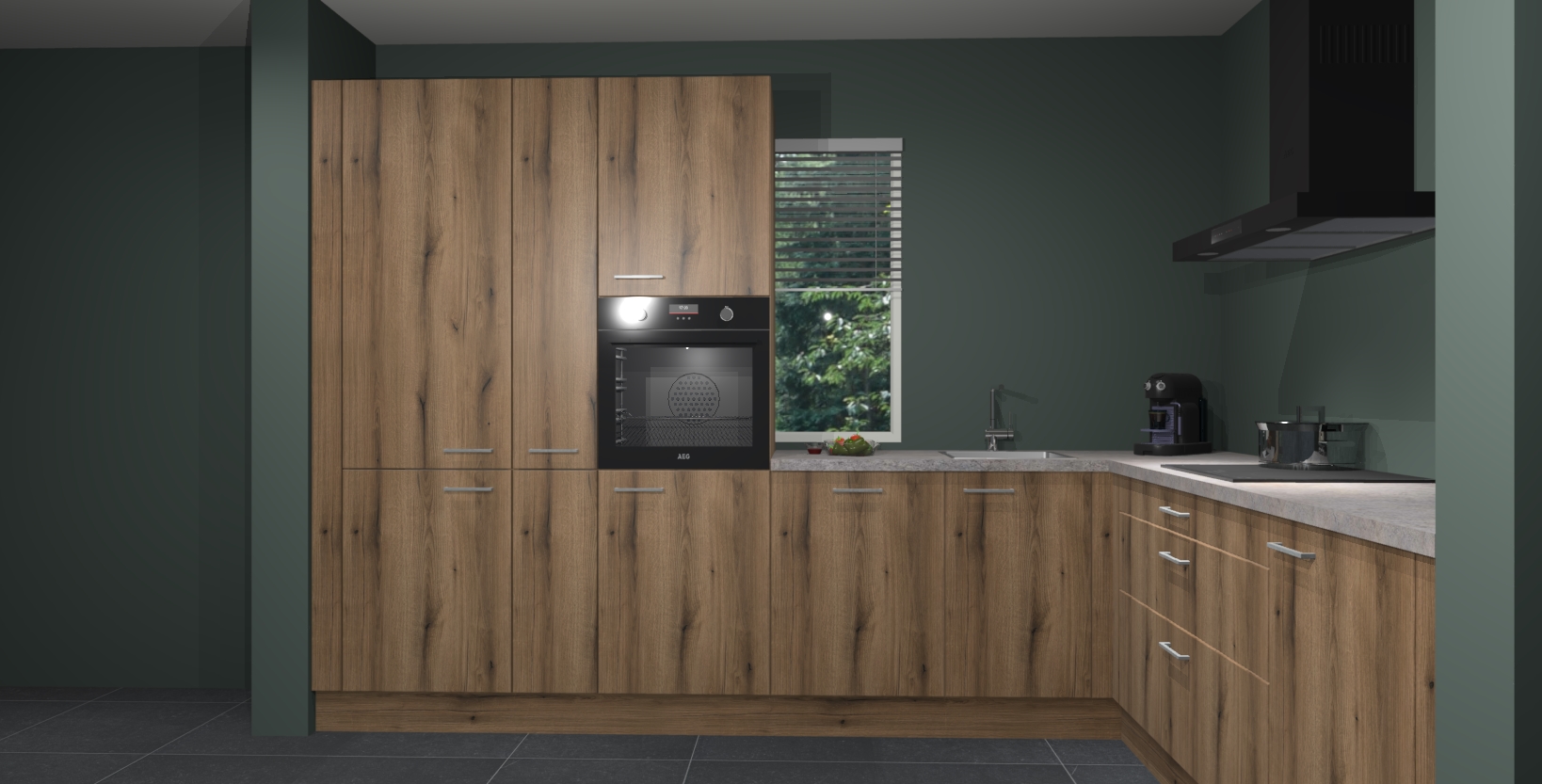 Met een modern, tijdloos design en ruime opslagruimte, zult u zich in no-time thuis voelen in uw nieuwe keuken. Uw leven wordt eenvoudiger met de soft-close deuren die voor het ultieme stille comfort zorgen - geen geluid dat u stoort terwijl u kookt. Ook is de keuken voorzien van 5 ingebouwde apparaten: een oven, inductie kookplaat, afzuigkap, vaatwasser en koelkast. Deze kunnen gemakkelijk na bestelling worden bijgewerkt naar AEG - waardoor uw luxe ervaring compleet is.