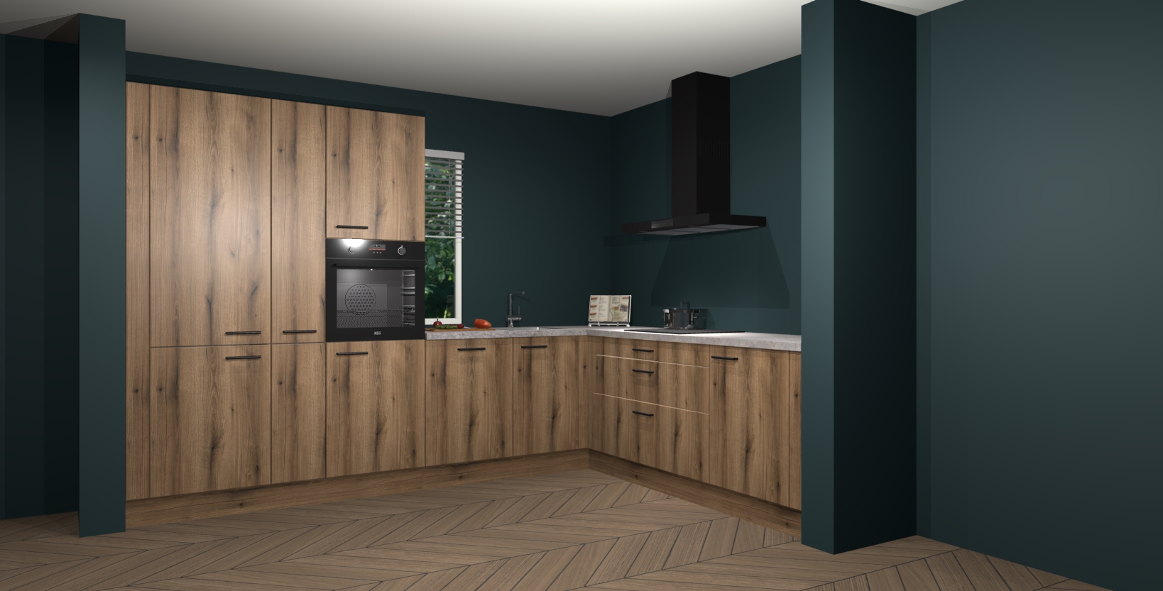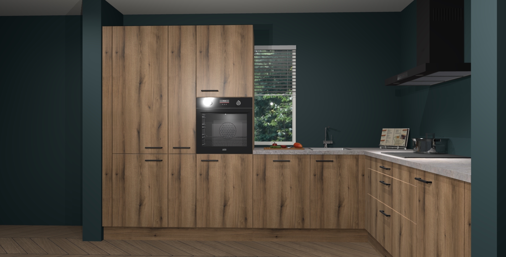 Met een modern, tijdloos design en ruime opslagruimte, zult u zich in no-time thuis voelen in uw nieuwe keuken. Uw leven wordt eenvoudiger met de soft-close deuren die voor het ultieme stille comfort zorgen - geen geluid dat u stoort terwijl u kookt. Ook is de keuken voorzien van 5 ingebouwde apparaten: een oven, inductie kookplaat, afzuigkap, vaatwasser en koelkast. Deze kunnen gemakkelijk na bestelling worden bijgewerkt naar AEG - waardoor uw luxe ervaring compleet is.